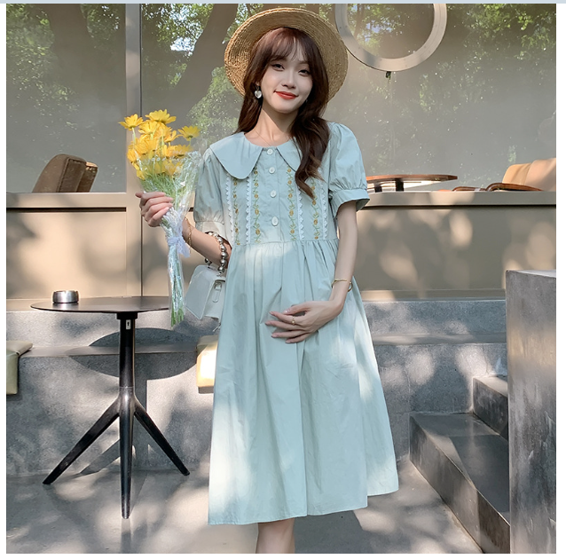 ✨ĐẦM BẦU VÁY BẦU CÔNG SỞ CỔ SEN THÊU NGƯC sau sanh có nút mở cho bé ti