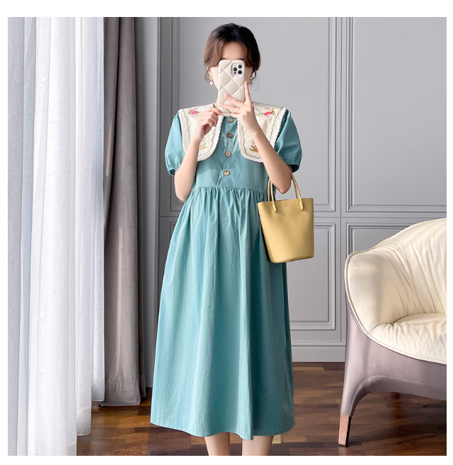 ✨ĐẦM BẦU VÁY BẦU CÔNG SỞ CỔ THÊU HẢI QUÂN sau sanh có nút mở cho bé ti