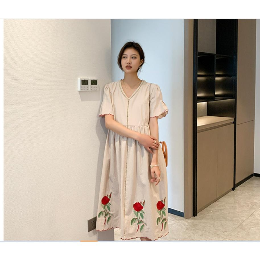Đầm bầu suông váy bầu theo phong cách thời trang Hàn Quốc mới Chất liệu voan chiffon 2 lớp Kích thước 44-64kg ngực 98 dài 88