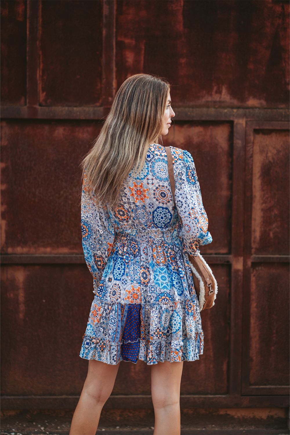 Mua tại TiktokĐầm Boho Dài Tay Isla Bonita, chất lụa cao cấp, mềm mại, thun co giãn ở eo. Phom suông xòe rộng. Dài đầm 90cm (45x90)