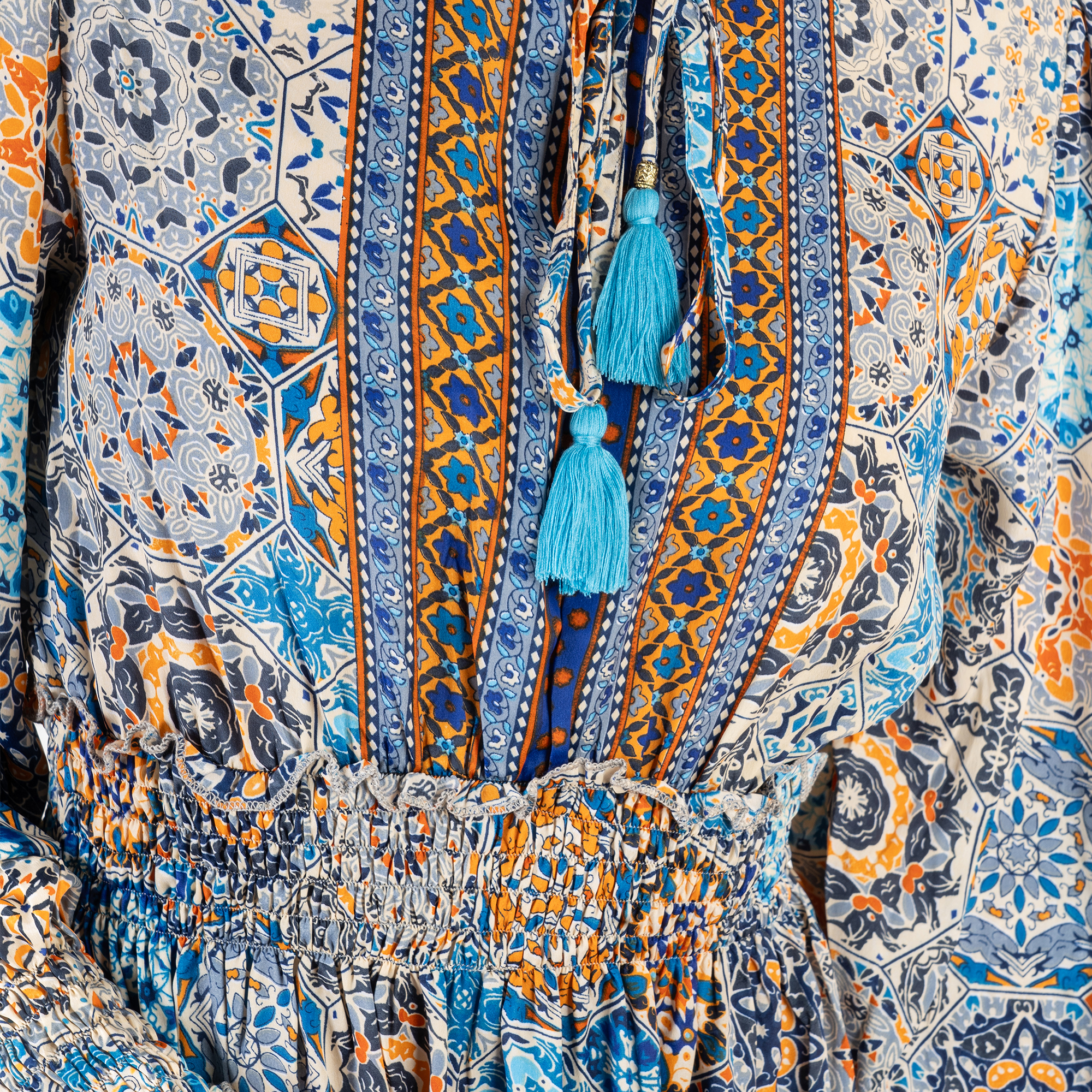 Đầm Boho Dài Tay Isla Bonita, chất lụa cao cấp, mềm mại, thun co giãn ở eo. Phom suông xòe rộng. Dài đầm 90cm (45x90) Phù hợp đi biển, dạo phố, công sở, hoặc dự
