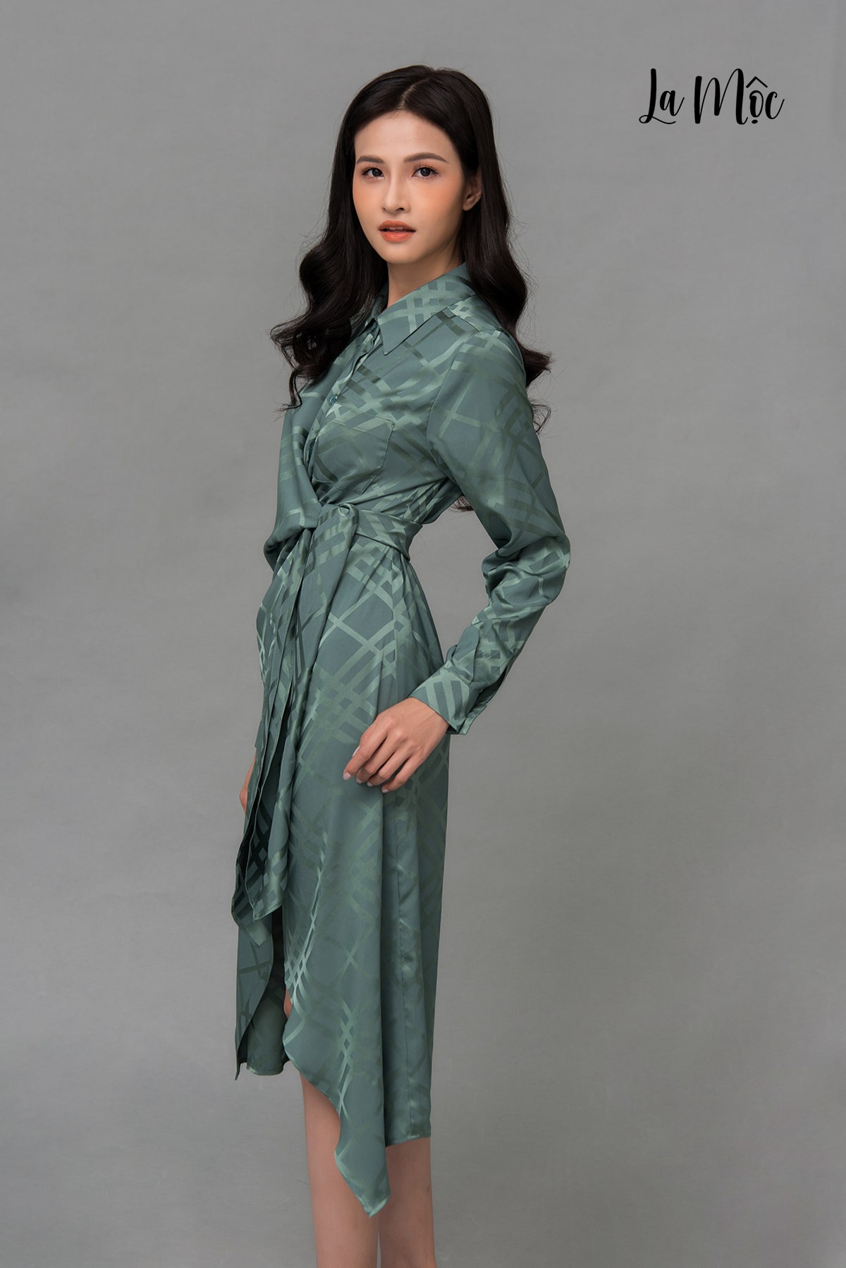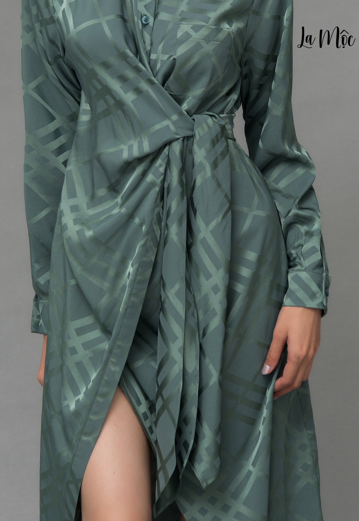✨Đầm Công Sở Lụa Hàn, Đắp Chéo Thắt Dây Eo Maxivic, La Mộc - LM92105