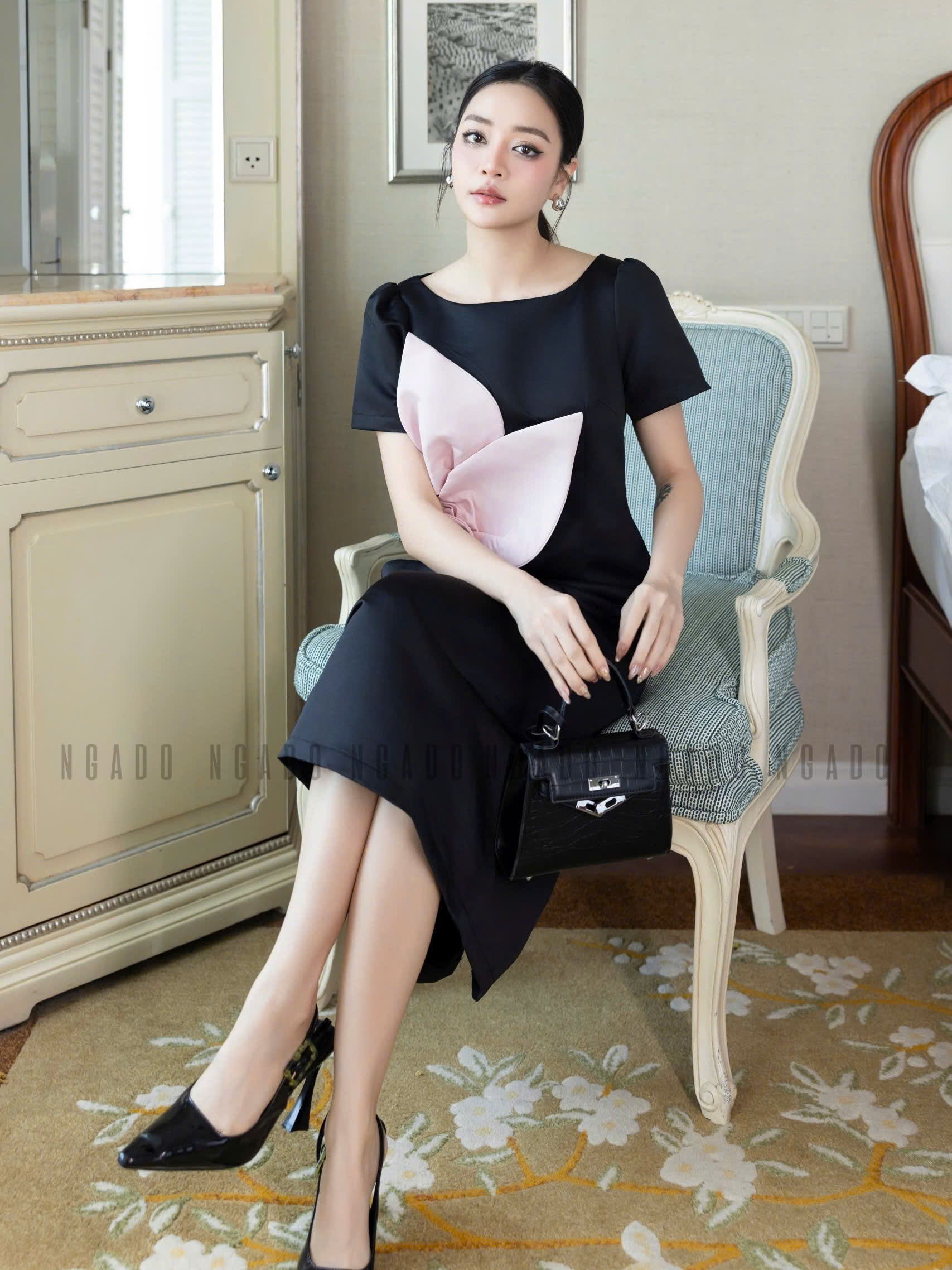 ✨Đầm đen cổ thuyền phối hoa NGADO , đầm dự tiệc , đầm bút chì