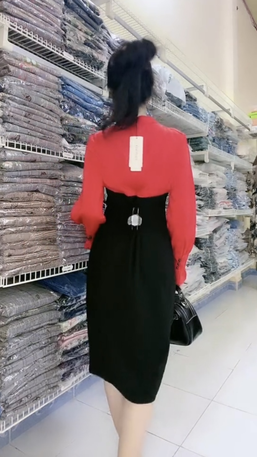 Đầm xẻ tay kèn cao cấp trang nhã Mã: DZBS001 Màu: Đen + Đỏ Chất liệu: Acetate Số đo vòng1/vòng2(cm): 88/72
