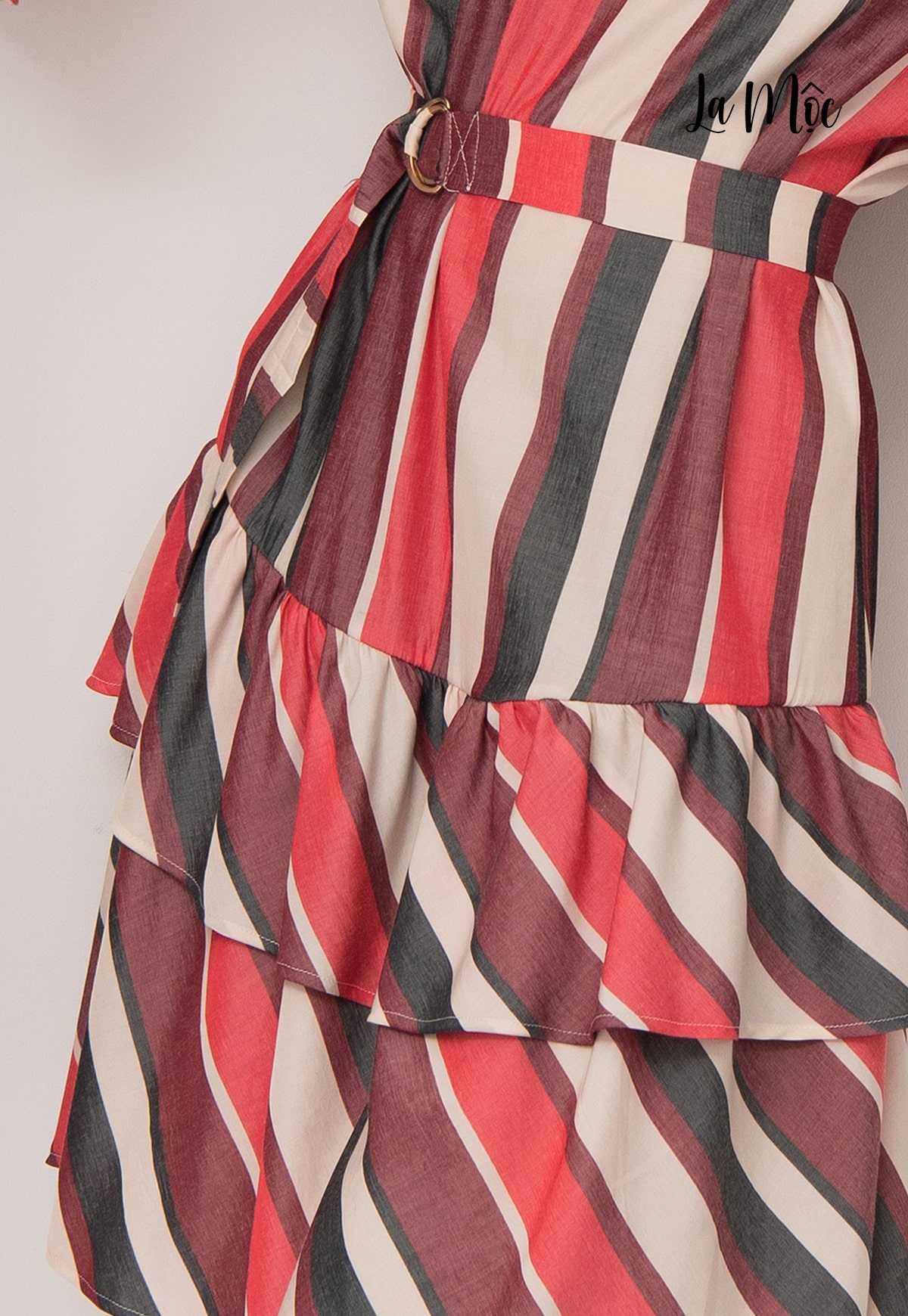 Đầm sọc đỏ trắng, thắt lưng La Mộc chất liệu vải lụa Korea. Thiết kế chú trọng từng đường may. Mang lại cảm giác thanh lịch cho người mặc.