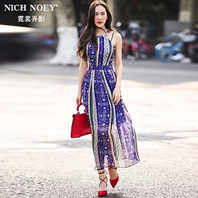 Đầm Maxi chất liệu tơ cao cấp cổ yếm họa tiết - Váy maxi đi biển duyên dáng - Giá ưu đãi mùa hè 2023
