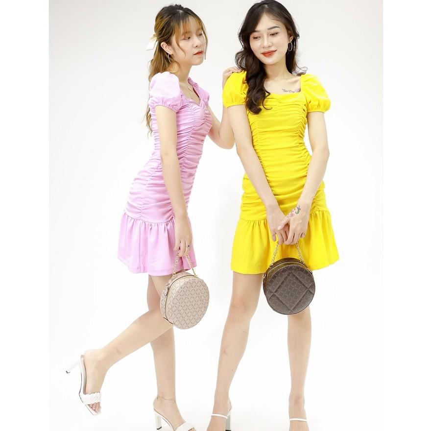 ✨Đầm ôm cổ vuông, đuôi cá, rúm chun dọc thân Emspo DS4079