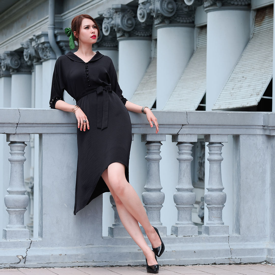 Đầm cho người mập big size Nếu màu sắc càng đơn giản thì càng phù hợp với những bạn có thân hình to béo. Đặc biệt là lợi thế của màu đen sẽ đánh lừa
