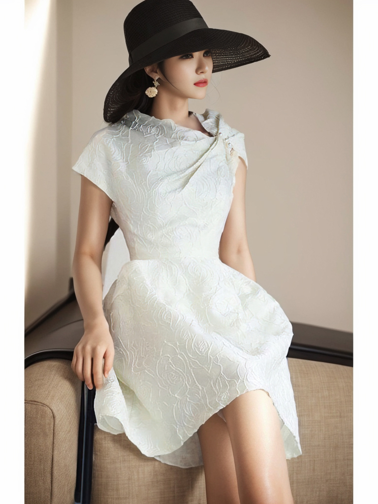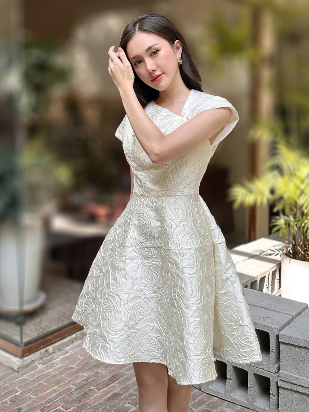 ✨Đầm trắng dự tiệc MINA thiết kế dáng xoè mini chất liệu gấm vân hoa hồng cao cấp - MN189