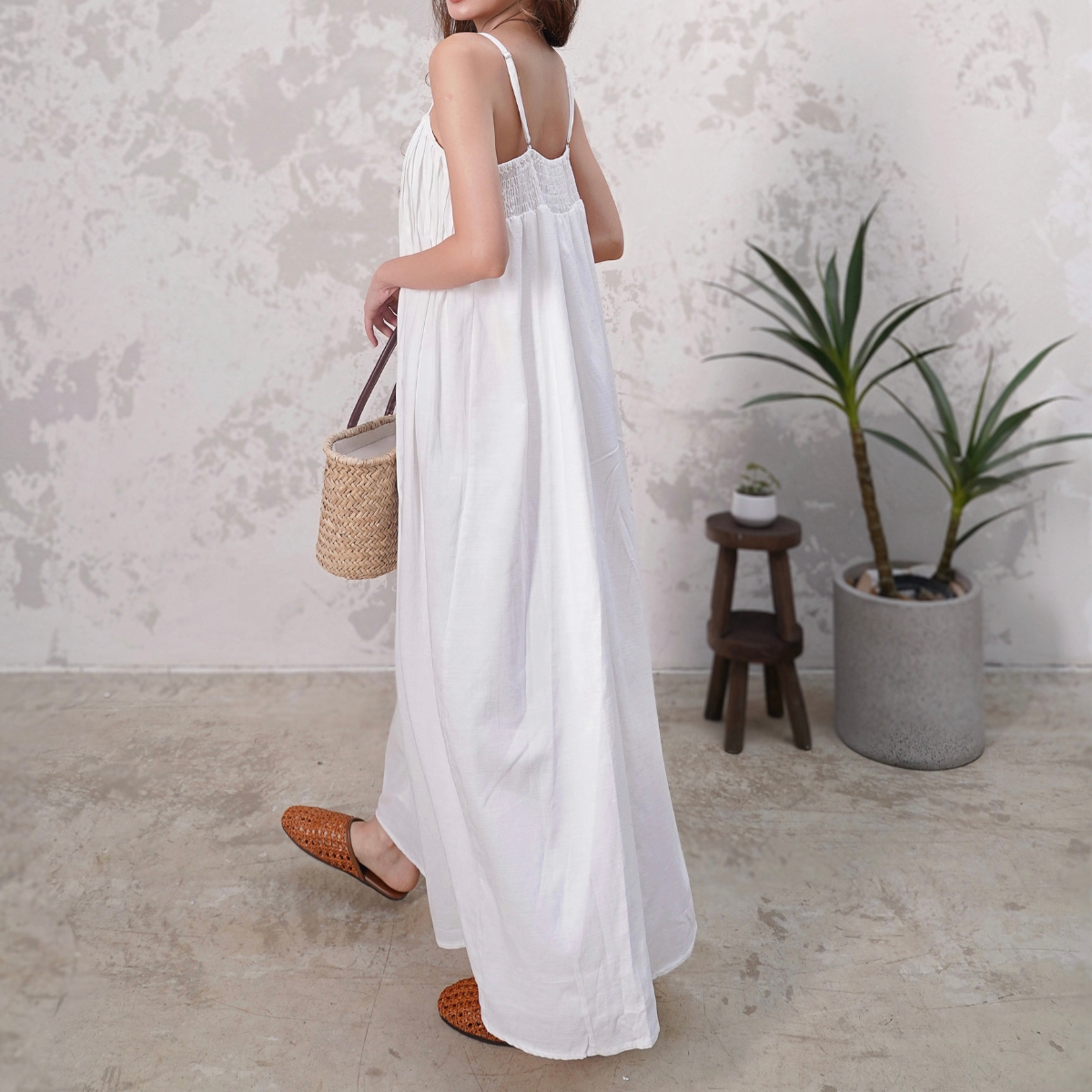 CHI TIẾT SẢN PHẨM ✿ Sản phẩm : Đầm váy maxi dáng dài nữ tính thích hợp dạo phố Anne Miều Est.2013 ✿ Chất liệu : Linen ✿ Màu sắc : TRẮNG ✿ Size :