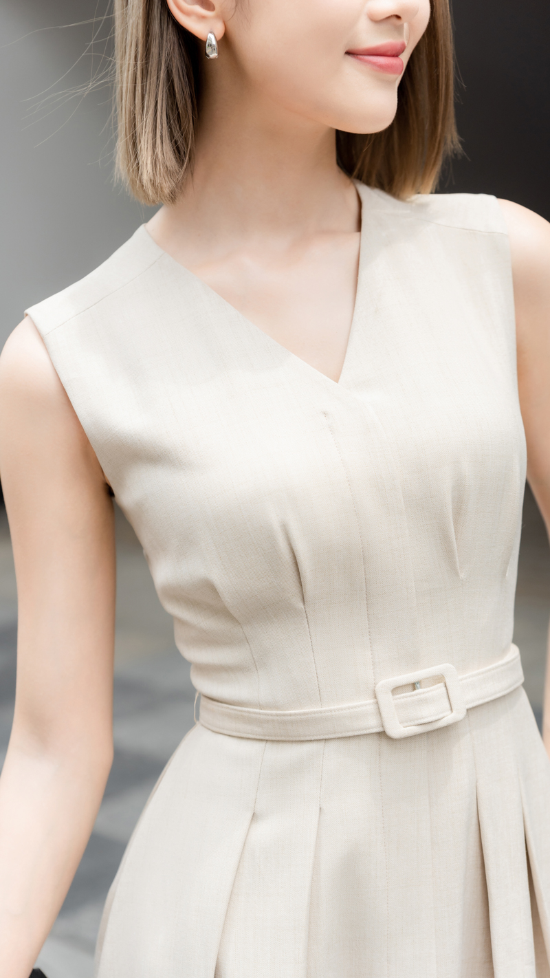 - Thông tin sản phầm Đầm sát nách xếp ly thân trước + thân sau cầu vai 2 lớp vải chính. Thiết kế đầm liền thân chiết eo, cổ V tinh tế giúp tổng thể cân đối và thanh thoát. Độ dài đầm mặc qua đầu gối cùng thân váy xòe nhẹ nhàng với đường xếp ly tạo sự bồng bềnh tự nhiên, thướt tha mỗi khi di chuyển.