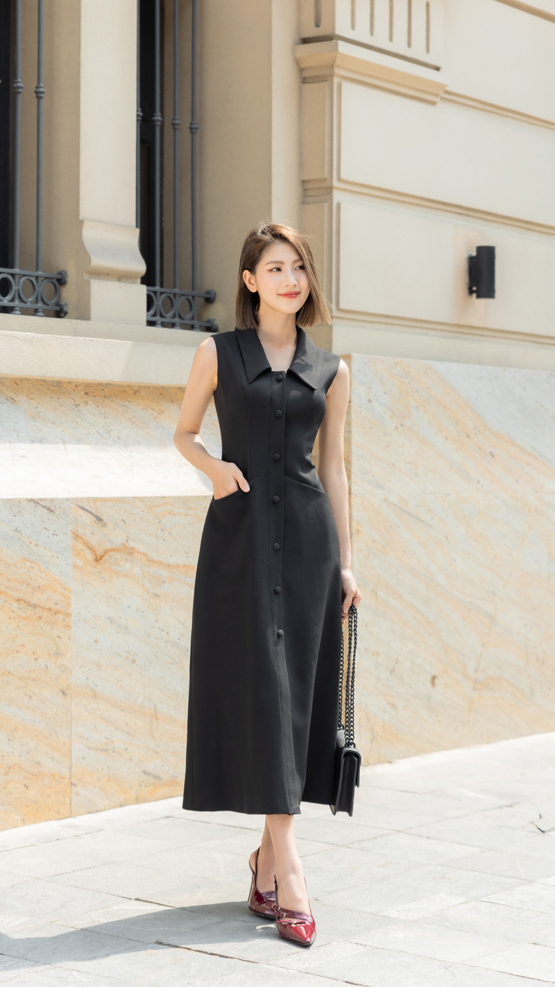 ღ THÔNG TIN SẢN PHẨM: Tên sản phẩm: Đầm đen cổ giọt nước Thông số size: S, M, L, XL Chất liệu: Chất gân ý Chi tiết sản phẩm: Không lót,