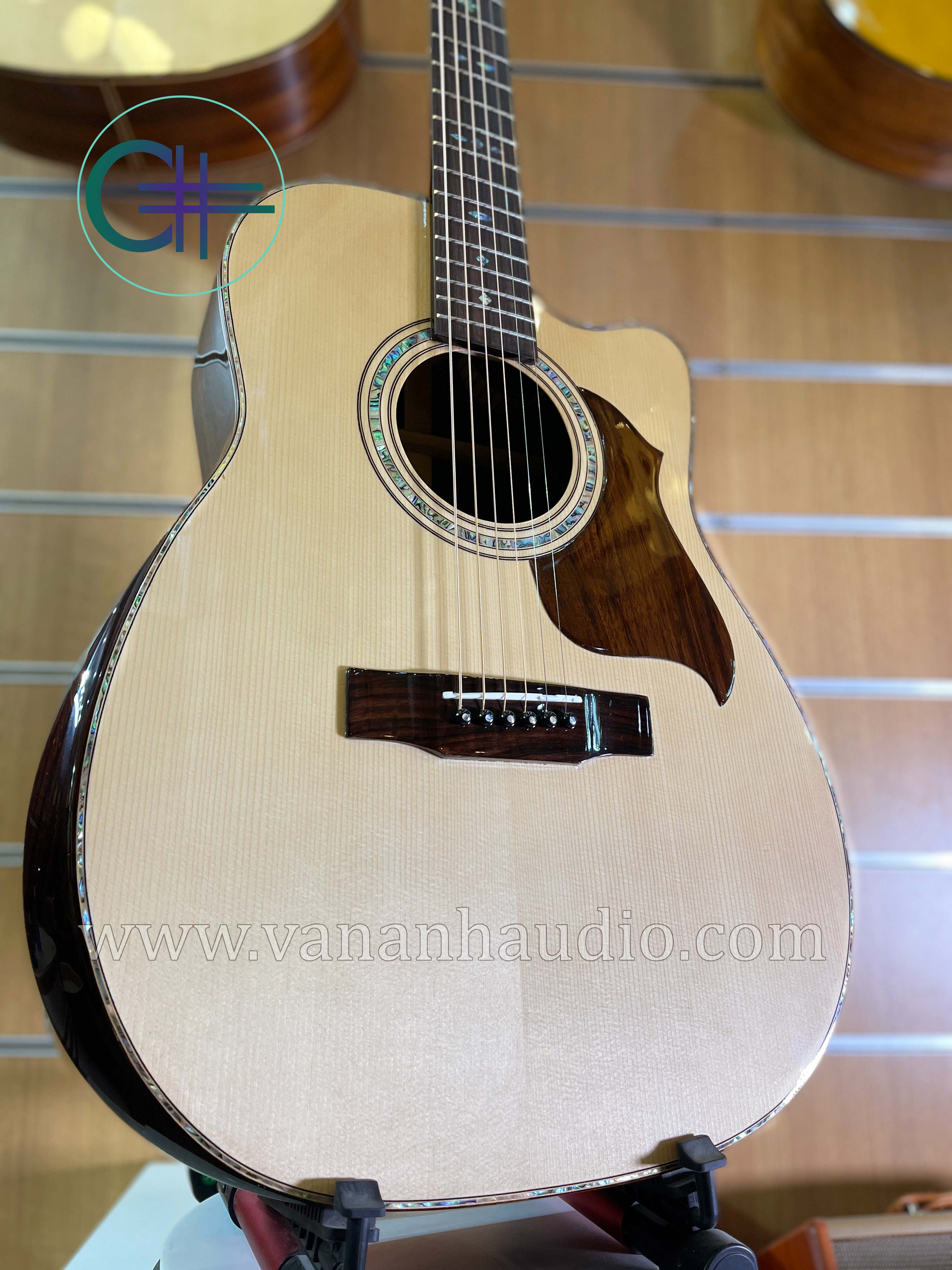 Mua tại TiktokĐàn Guitar Acoustic CL2022 được sản xuất thủ công theo đơn đặt hàng thiết kế riêng cho anh Doãn Thành Trung. -Đàn được làm bằng chất liệu chính là gỗ Cẩm Ấn, được nghệ nhân khảm trai, ốc xà cừ lấp lánh sang trọng và tinh tế. -Văn Anh Audio nhận đặt hàng guitar Custom gỗ cẩm Ấn giá từ 13-17 triệu tuỳ theo yêu cầu