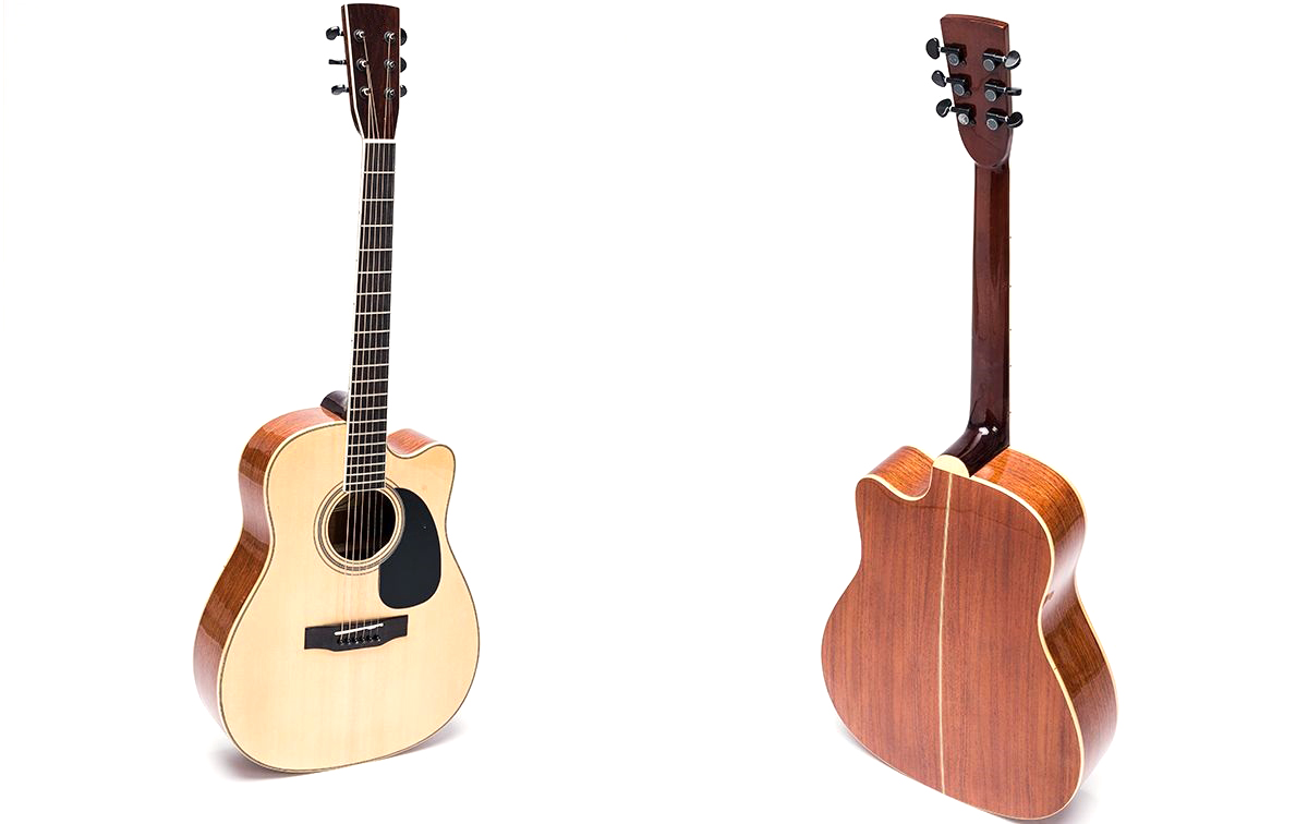 Guitar acoustic Hohner CS-DCESB có dáng khuyết được làm bằng gỗ gụ. Cây guitar này có một âm thanh ấm hơn so với các loại khác do sự kết hợp chung của gỗ gụ và