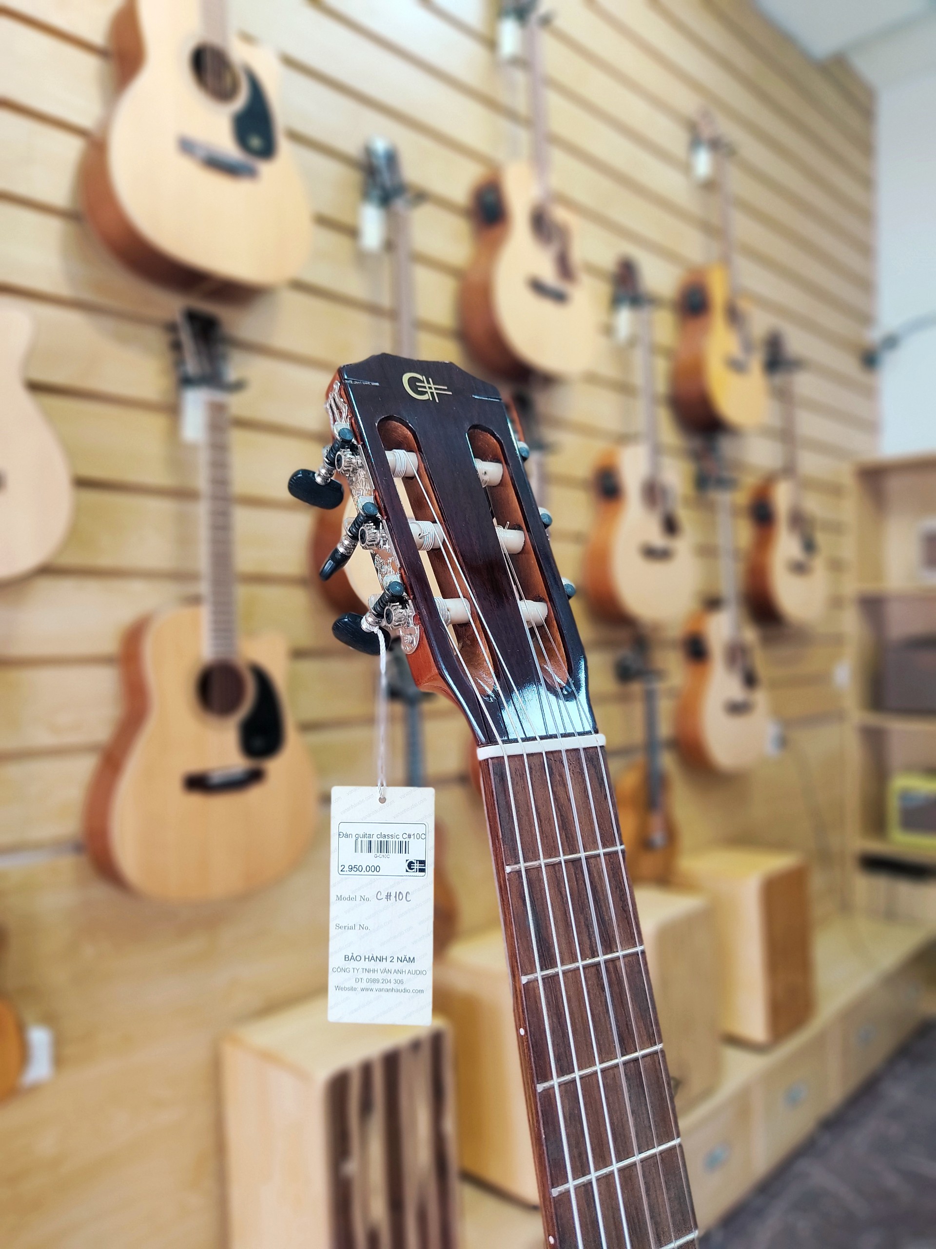 Đàn guitar classic khuyết C#10CK Việt Nam do hãng Văn Anh Audio sản xuất. Có logo C# đầu cần đàn. Action được chỉnh ở mức tiêu chuẩn, đánh rất êm và nhẹ tay. C#10CK là