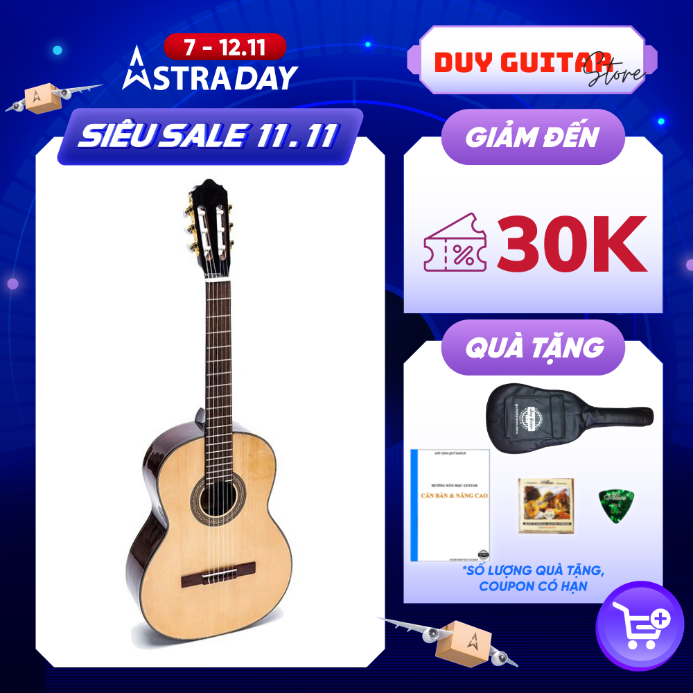 Đàn guitar classic solid mặt thông cedar lưng hông gỗ hồng đào DC250J Duy Guitar Store