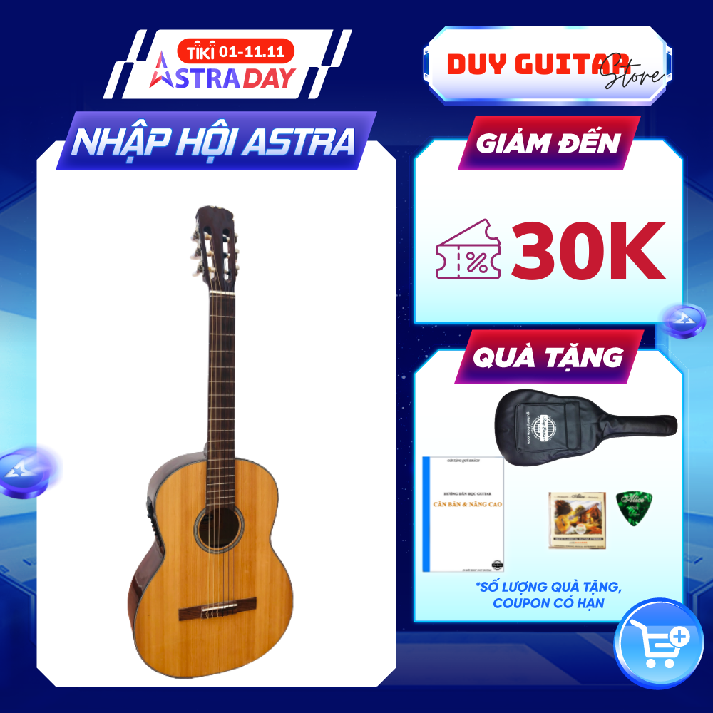 Shop Duy Guitar - đàn guitar classic chơi nhạc cổ điển Mã: DC120J Mặt: gỗ thông Eo + lưng: hồng đào chất lượng cao Cần: gỗ thao lao, có ty chống cong cần Mặt phím: