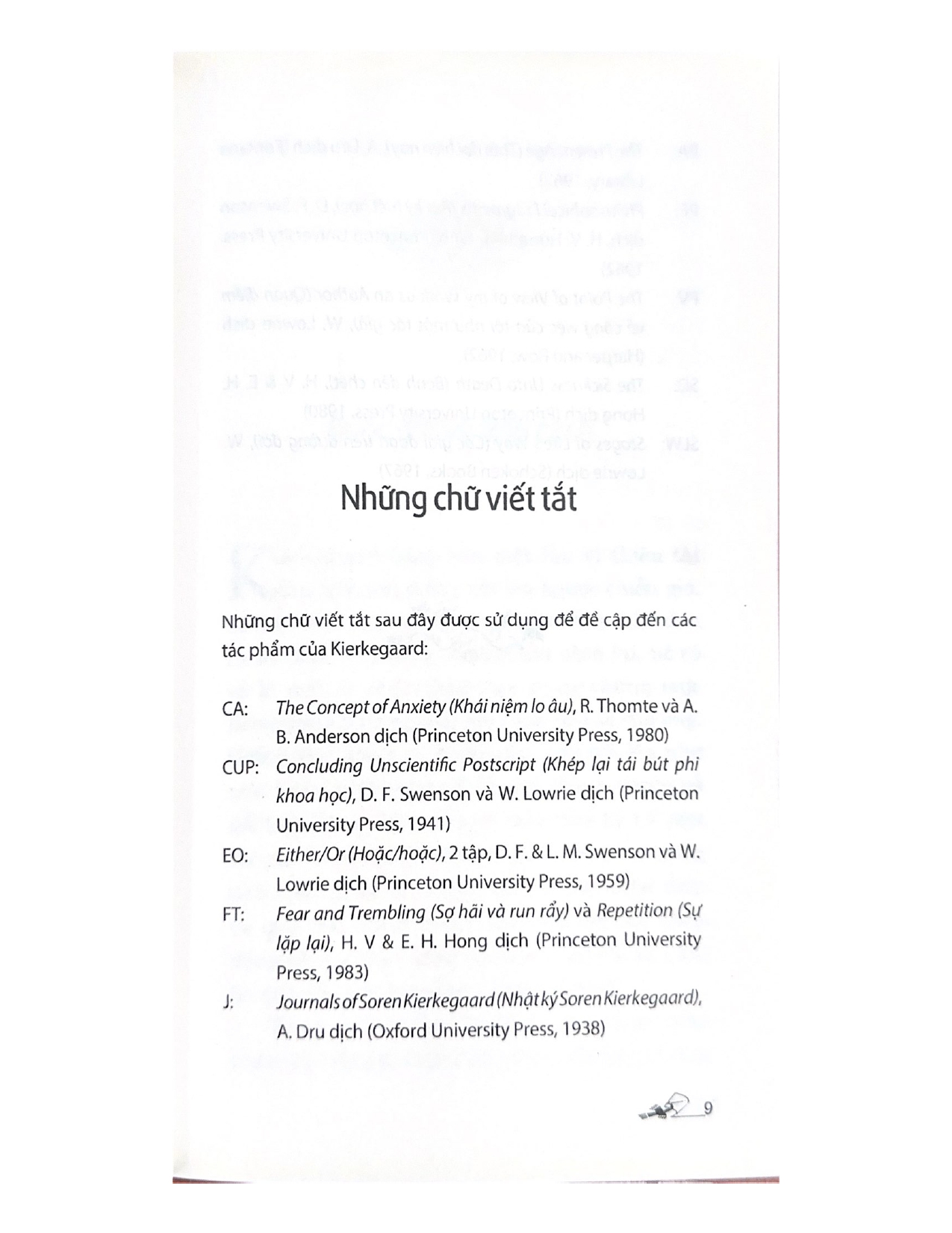 Soren Kierkegaard là một trong những triết gia độc đáo nhất của thế kỷ 19, với các tác phẩm về tôn giáo, tâm lý học và văn học. Những di sản sách triết học gây ấn tượng của ông đã là nguồn cảm hứng cho nhiều khuynh hướng tư tưởng của thế kỷ 20, đặc biệt là sự trỗi dậy của chủ nghĩa hiện sinh.