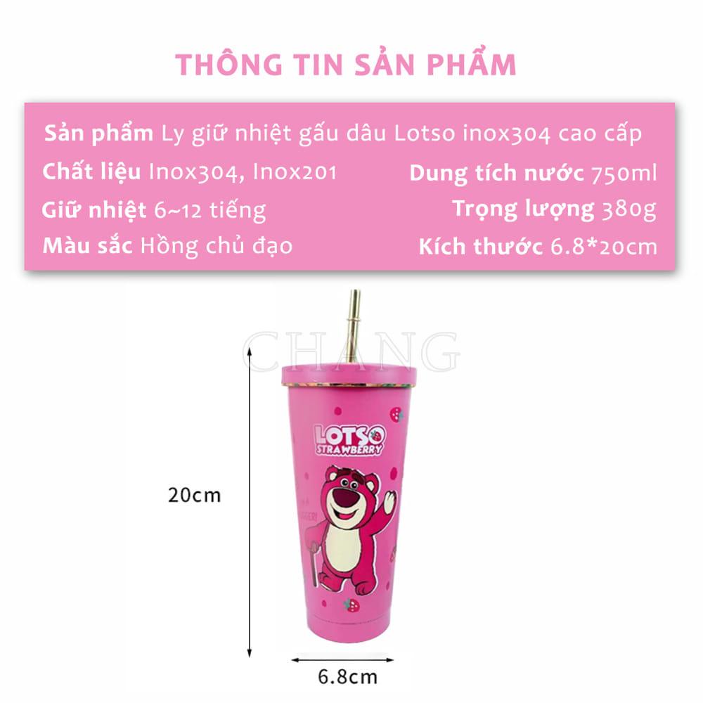 Đặc điểm nổi bật Ly Giữ Nhiệt Gấu Dâu LOTSO 750ML, Bình Giữ Nhiệt Inox 304 Tặng Kèm Ống Hút Cọ Vệ Sinh Và Túi Đựng Tiện Lợi