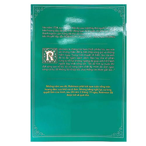 Robinson Crusoe lạc trên hoang đảo là một trong những câu chuyện thuộc tủ sách văn học kinh điển Thế Giới. Tác giả Daniel Defoe đã dùng ngòi bút của chủ nghĩa hiện thực để kể về câu chuyện chàng thủy thủ Robinson bị đắm tàu, lưu lạc đến đảo hoang và trải qua một cuộc sống rất gian khổ trong sự cô đơn; nhưng bằng nghị lực và lòng quyết tâm của mình Robinson đã trở về được với quê hương của mình.