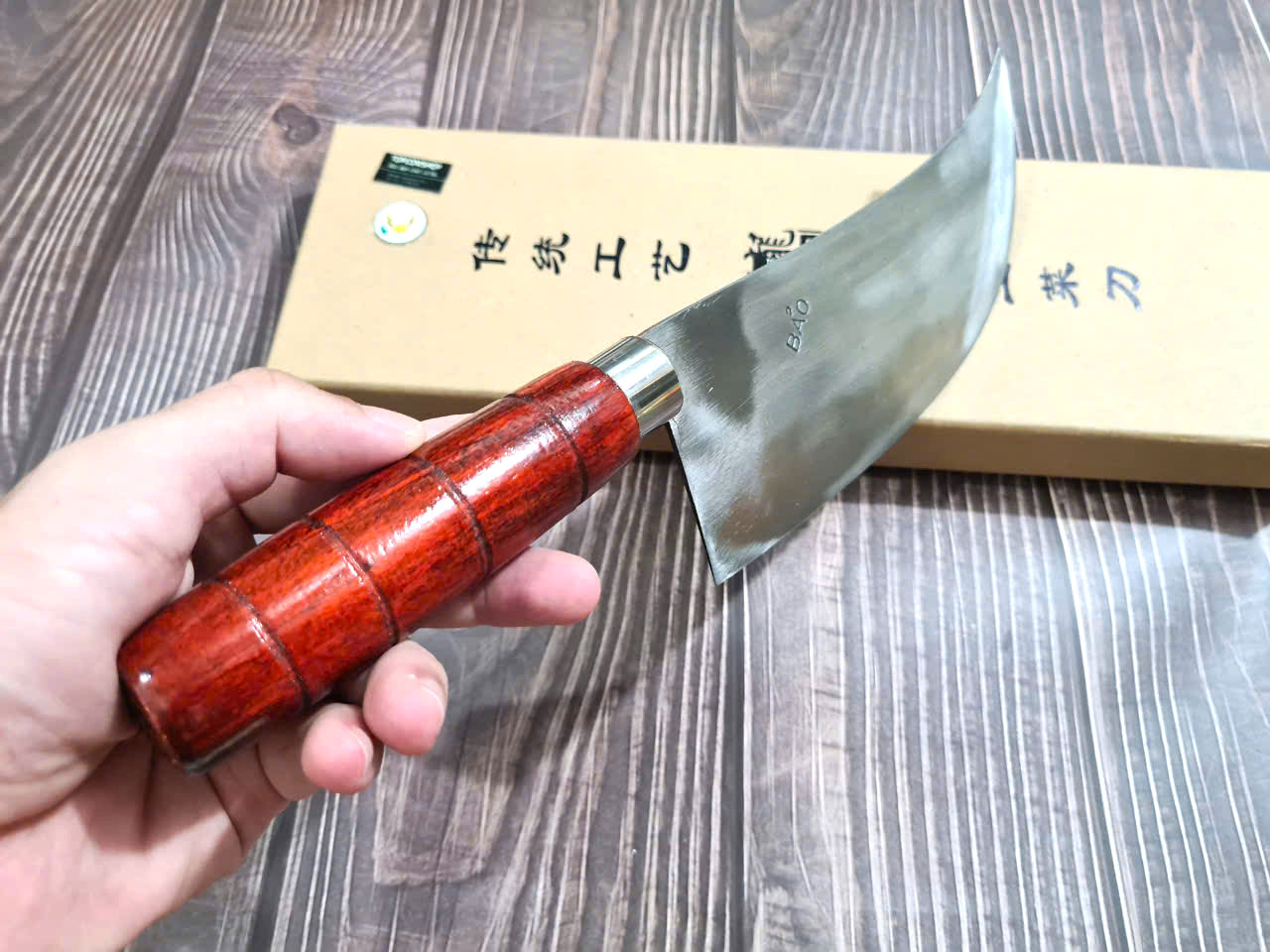 - Chức năng: thái thịt, rau củ quả - Kích thước: Lưỡi: 17cm, cán: 12cm, rộng: 5cm, dầy: 1ly, trọng lượng: 200g - Cán : Gỗ cẩm chỉ, Chốt, Khâu ĐỒNG ĐỎ , keo liên