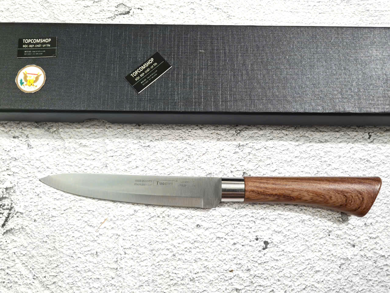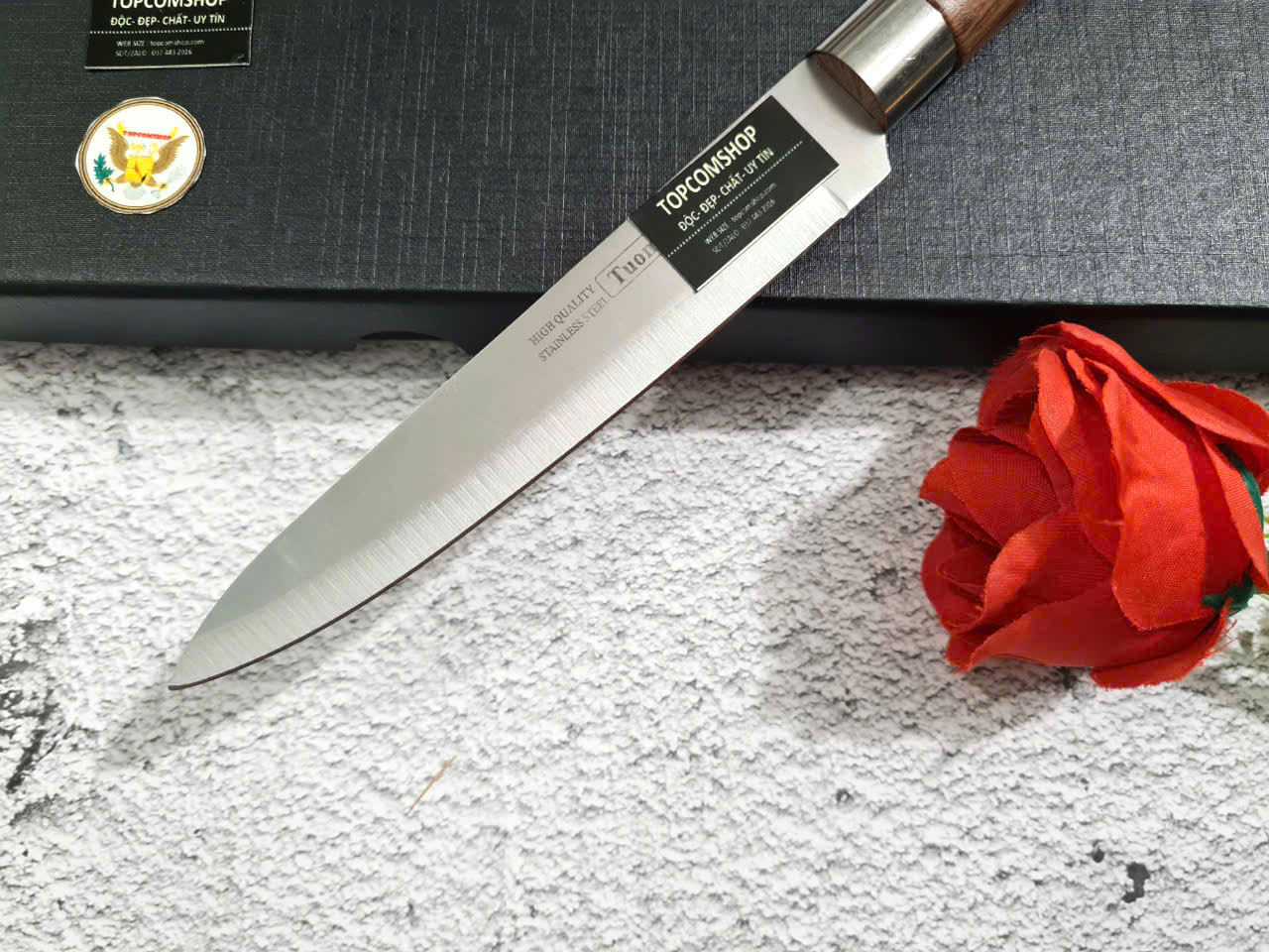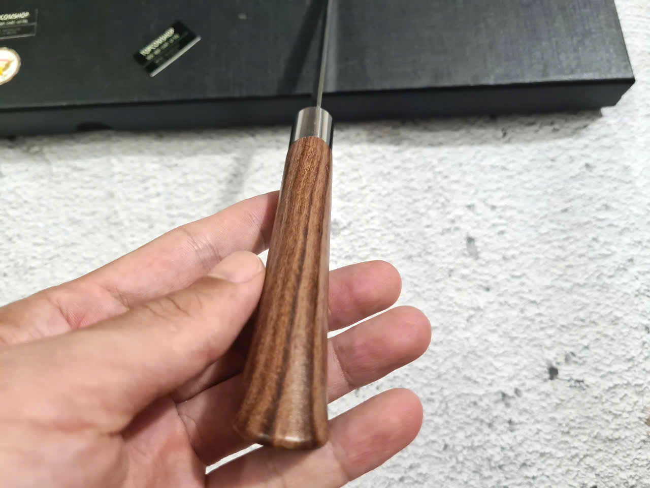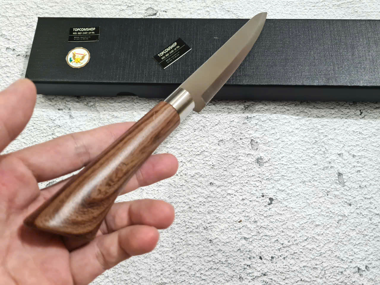 • Cán dao làm từ gỗ c ẩmlai sang trọng, tay cầm cong
