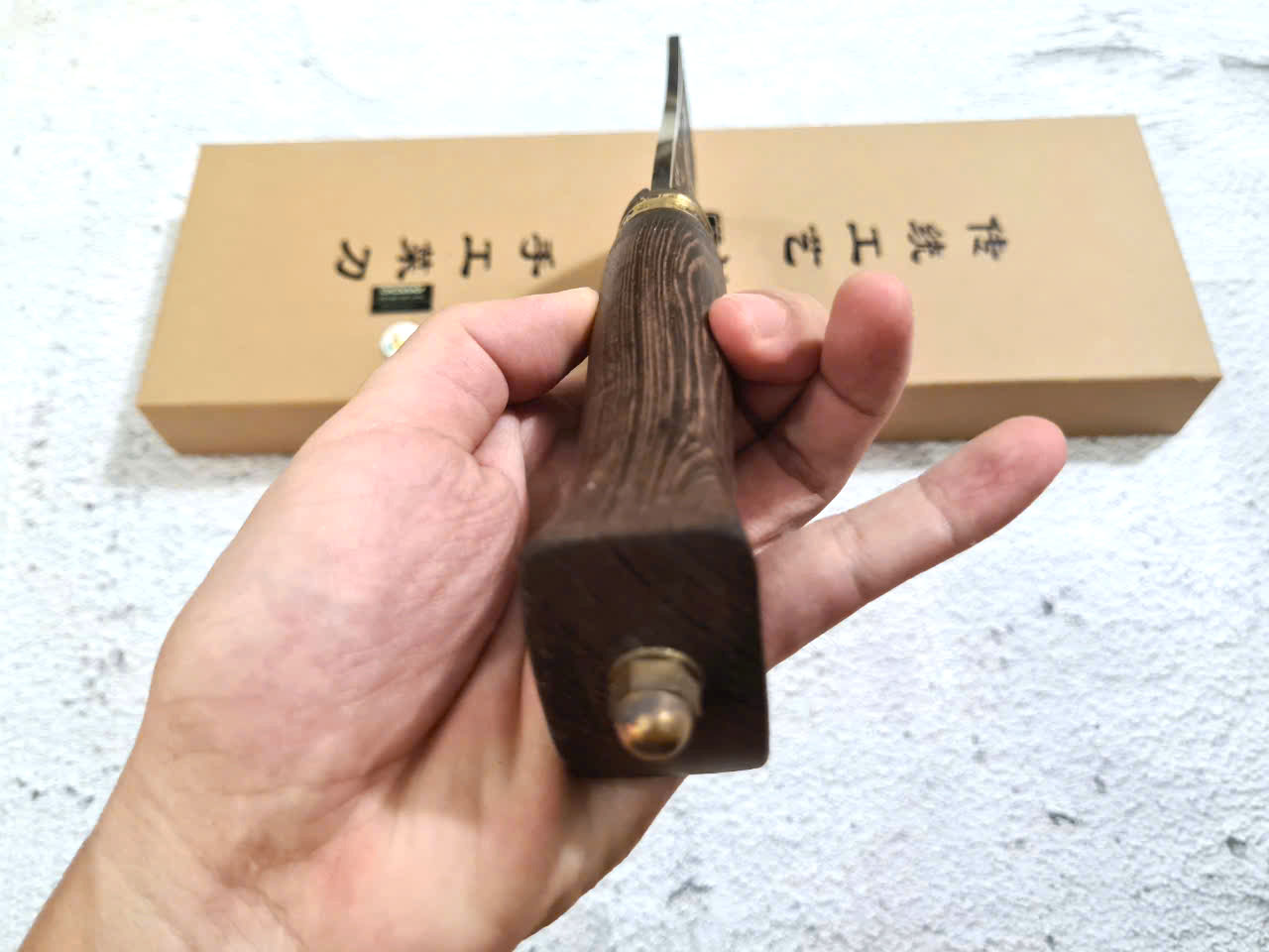 - Chức năng: chuyên chặt thái cá, chặt gà, lọ - Kích thước: Lưỡi: 26cm, cán: 12,5cm, rộng: 6,5cm, dầy: 4ly, trọng lượng: 480g - Cán : Gỗ mun , Khâu và chốt đồng đỏ