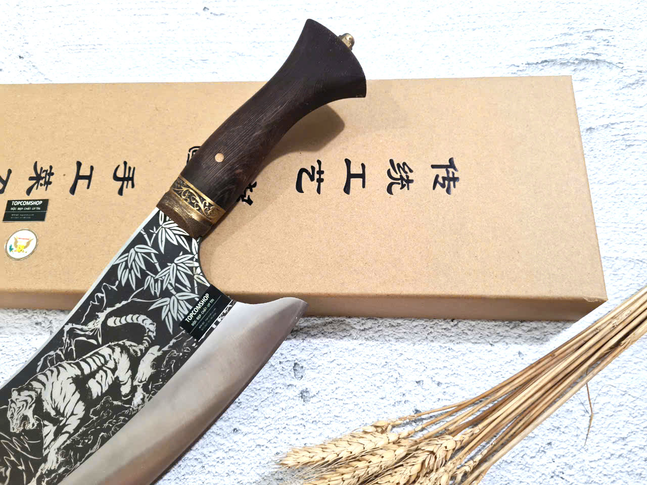 Tên sản phẩm: Dao Phúc Sen, Dao Tông Chặt Cán Gỗ Cẩm - Chất liệu: 100% thép nhíp ô tô được lựa chọn và kiểm duyệt kỹ càng. - Chất liệu cán: gỗ cẩm chỉ