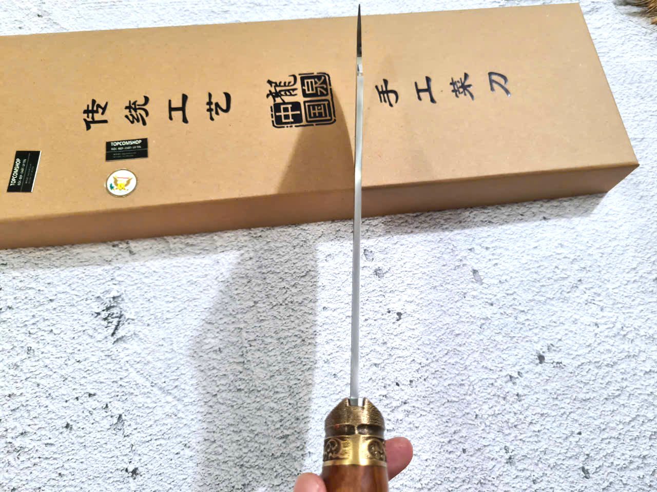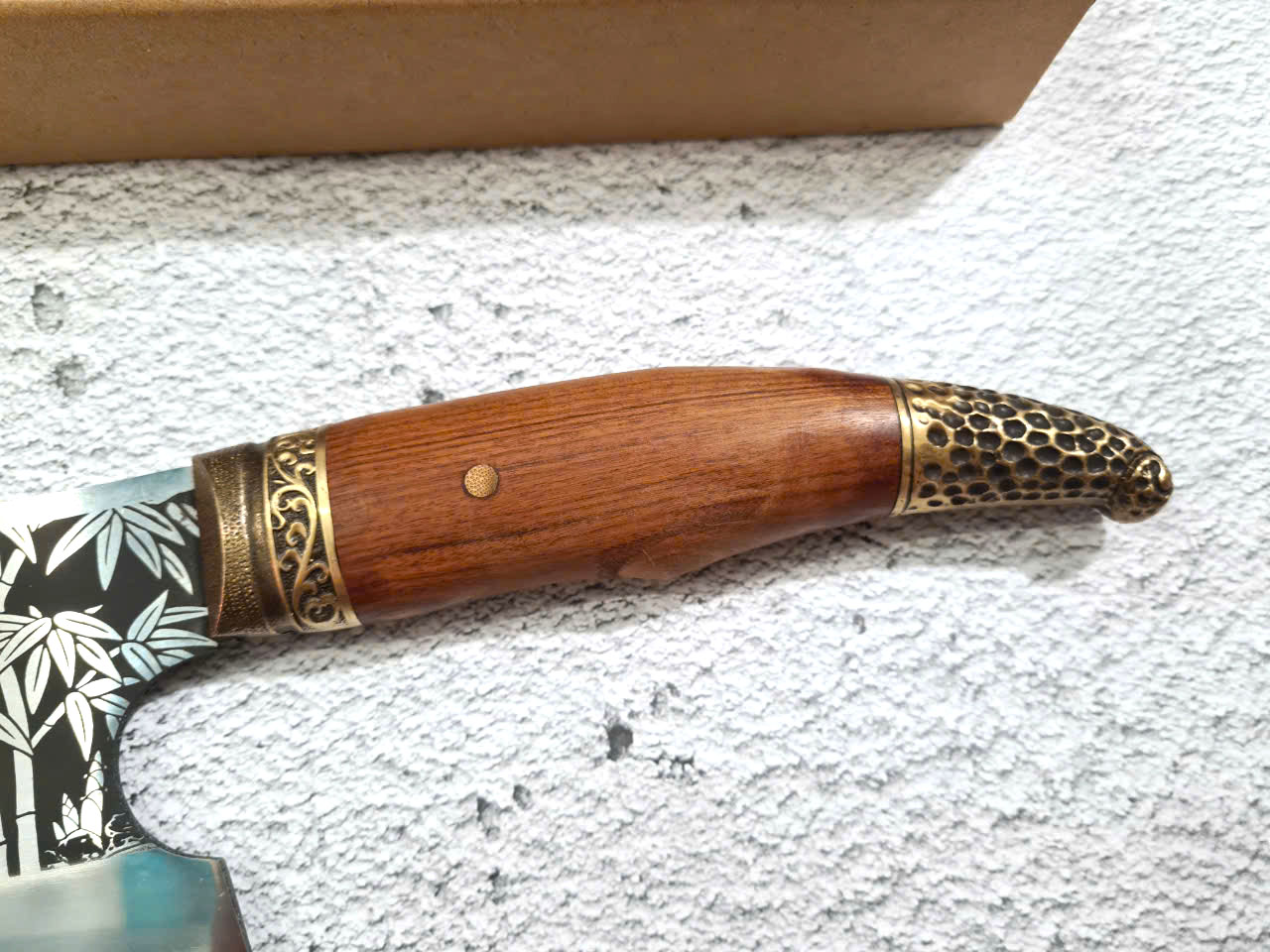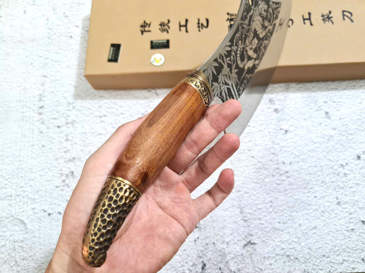 Dao Phúc Sen - Dao Chặt Gà Cán Cẩm Khâu Đồng G05D - Kích thước: lưỡi: 23cm, cán: 13cm, rộng: 8,5cm-9cm, dầy: 0,3, trọng lượng: 500g - 600g - Chức năng: sử dụng chuyên chặt