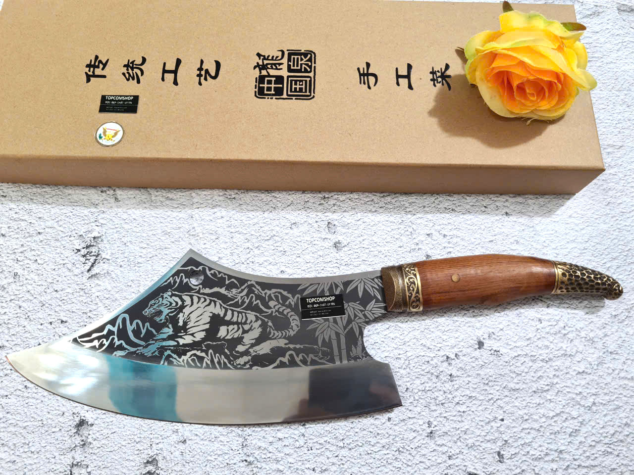 Tên sản phẩm: Dao Phúc Sen Dao Chặt Xương 03 Cán Cẩm - Chất liệu: 100% thép nhíp ô tô được lựa chọn và kiểm duyệt kỹ càng. - Chất liệu cán: gỗ cẩm chỉ