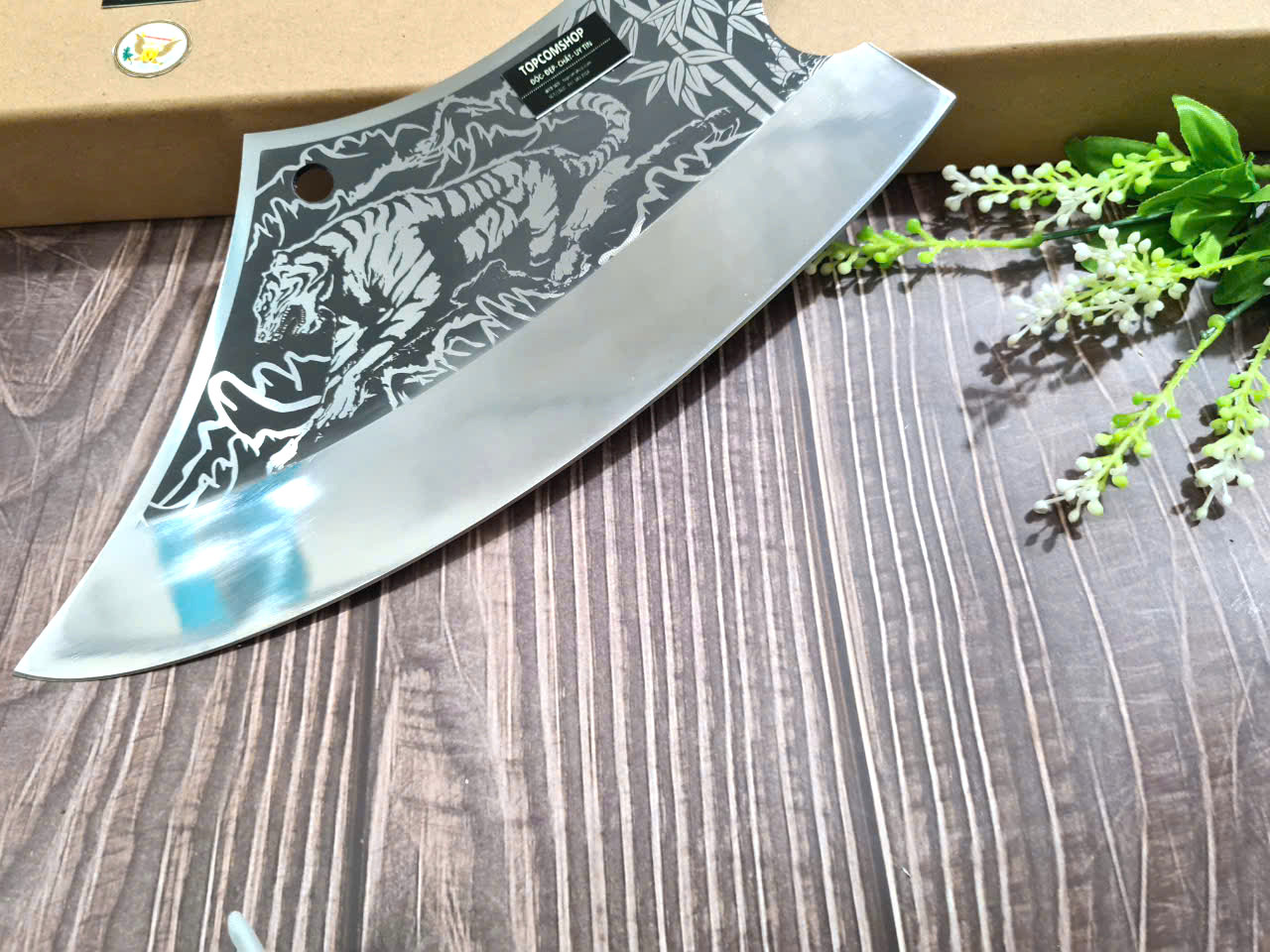 - Chức năng: chuyên chặt thái cá, chặt gà, lọ - Kích thước: Lưỡi: 26cm, cán: 12,5cm, rộng: 6,5cm, dầy: 4ly, trọng lượng: 480g + 100% nguyên liệu sử dụng rèn là nhíp ô tô