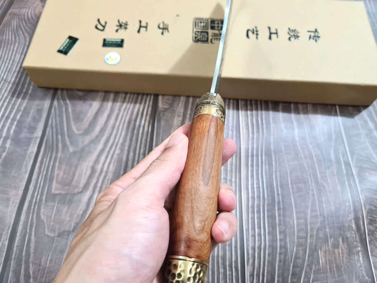 Dao Phúc Sen - Dao Chặt Gà Cán Cẩm Khâu Đồng G05D - Kích thước: lưỡi: 23cm, cán: 13cm, rộng: 8,5cm-9cm, dầy: 0,3, trọng lượng: 500g - 600g - Chức năng: sử dụng chuyên chặt