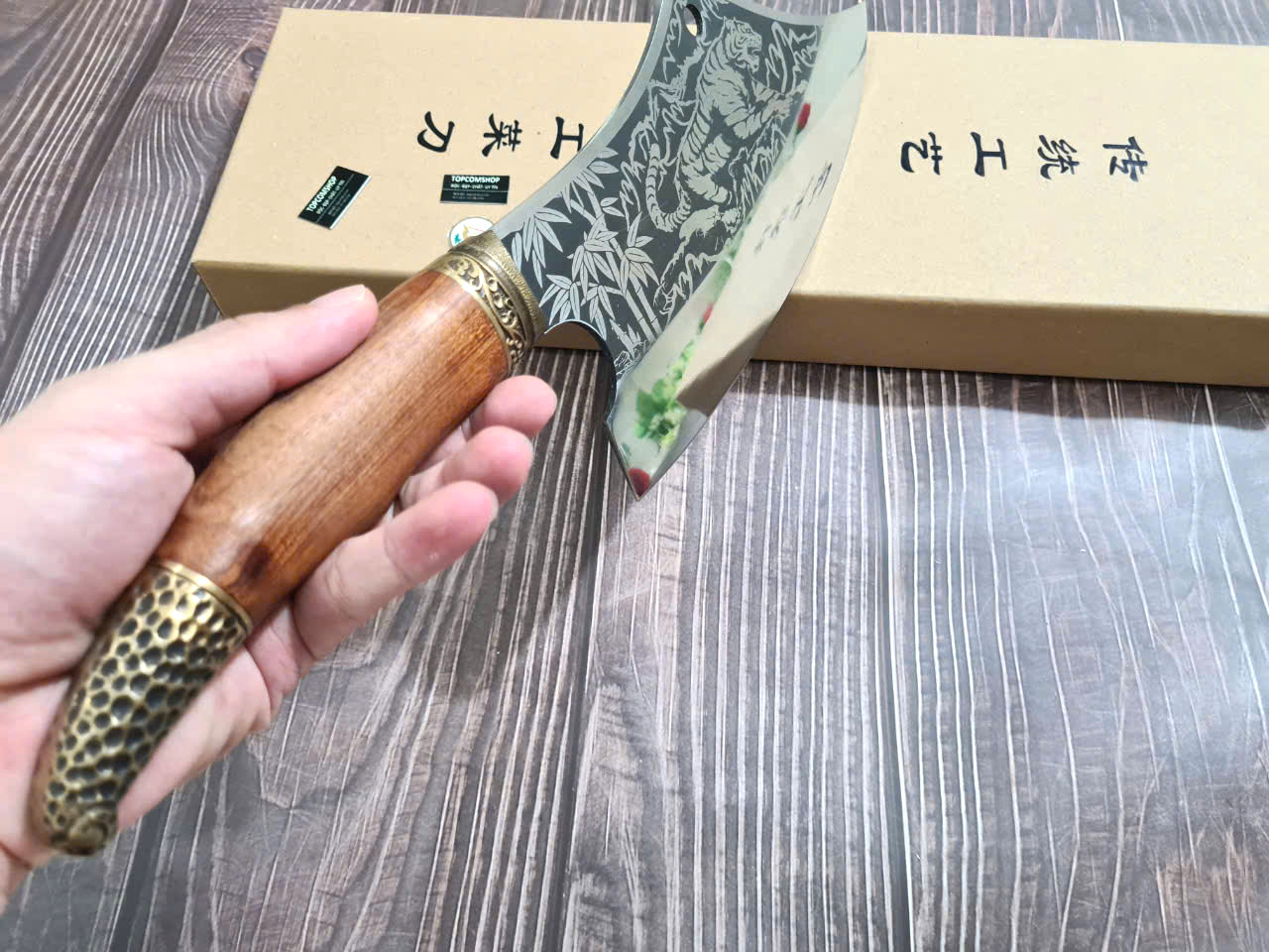 Tên sản phẩm: Dao Phúc Sen Dao Chặt Xương 03 Cán Cẩm - Chất liệu: 100% thép nhíp ô tô được lựa chọn và kiểm duyệt kỹ càng. - Chất liệu cán: gỗ cẩm chỉ