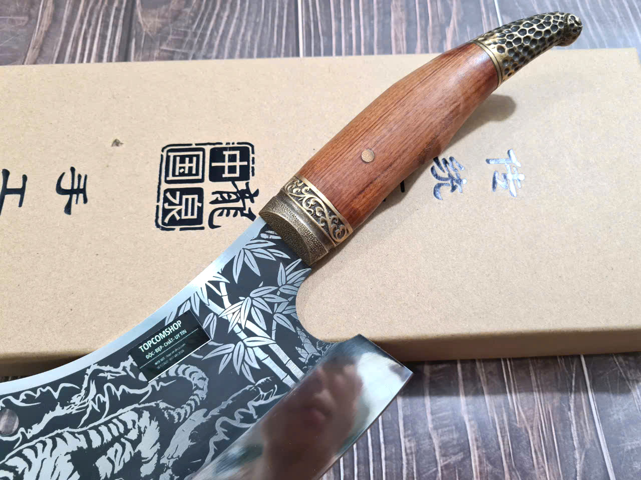 Dao Phúc Sen Chặt Xương Cán Cẩm Khâu Đồng - Kích thước: lưỡi: 24cm, cán: 13cm, rộng: 10cm, dầy: 0,5, trọng lượng: 700g - 900g - Chức năng: sử dụng chuyên chặt xương ống, xưởng