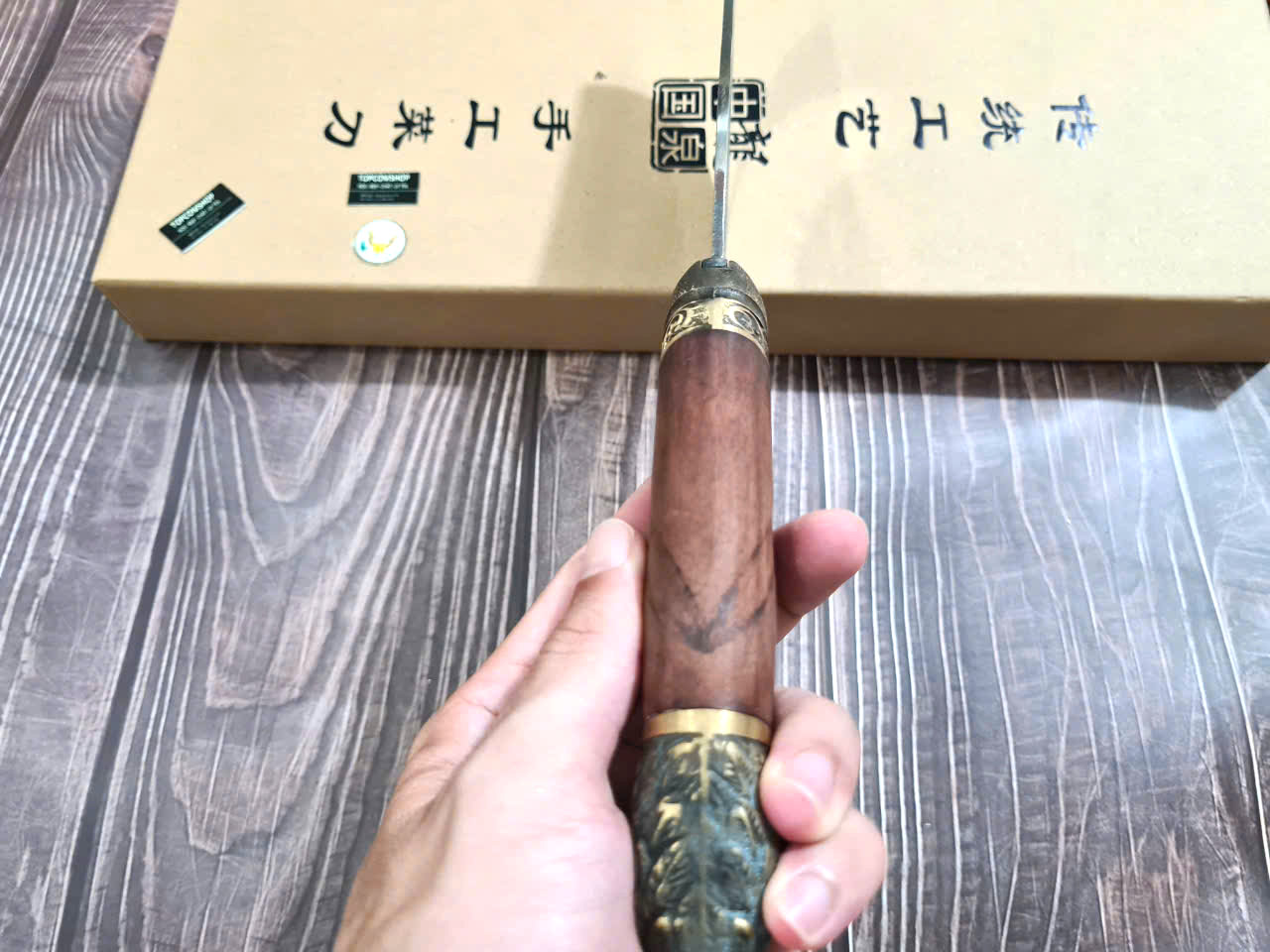 Dao Phúc Sen - Dao Chặt Gà Cán Cẩm Khâu Đồng G05D - Kích thước: lưỡi: 23cm, cán: 13cm, rộng: 8,5cm-9cm, dầy: 0,3, trọng lượng: 500g - 600g - Chức năng: sử dụng chuyên chặt