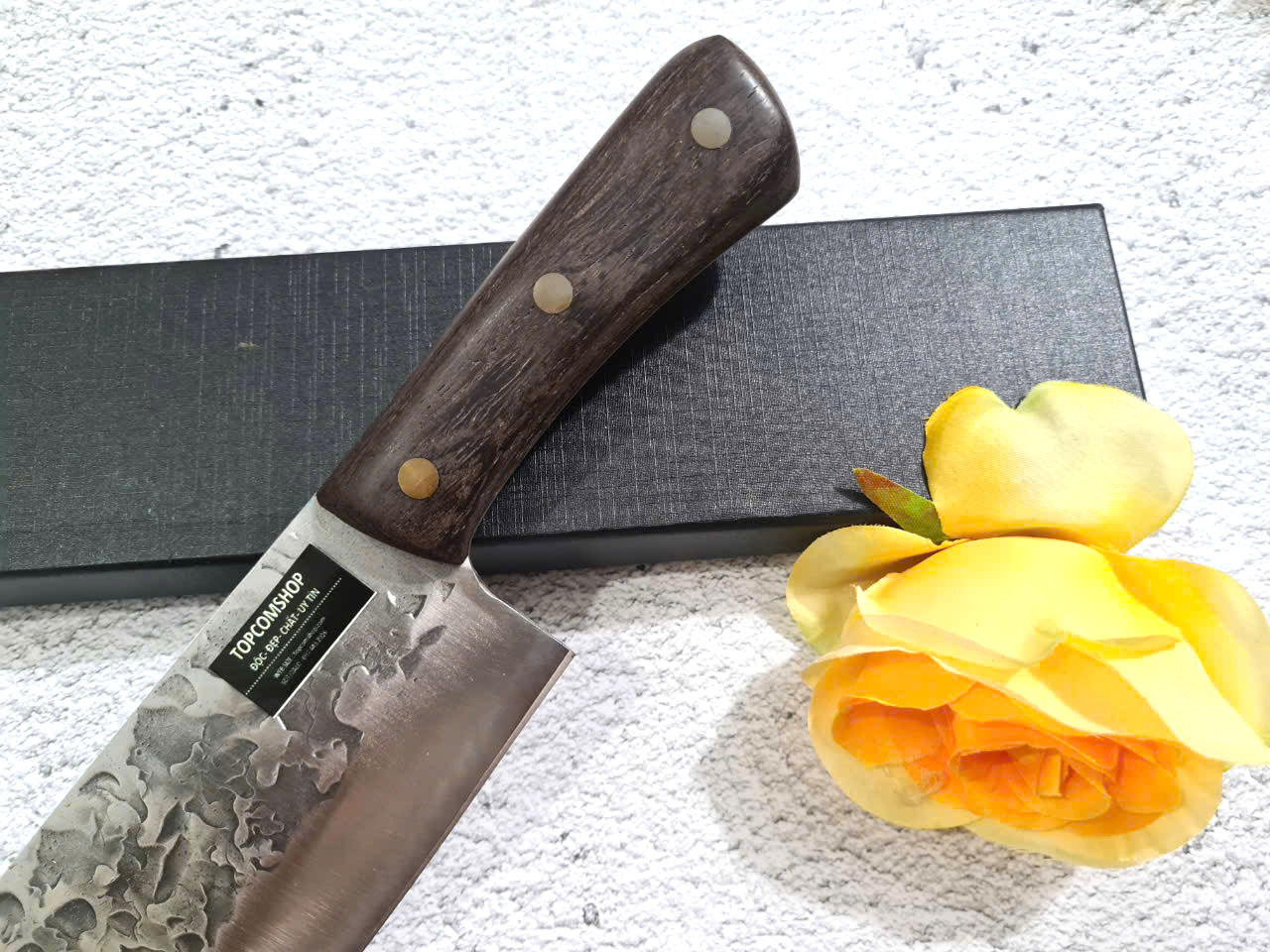 MÔ TẢ SẢN PHẨM **** DAO BẾP, DAO THÁI, DAO LỌC MÃ TR6 : CHÚ Ý : SẢN PHẨM KHÔNG HAN RỈ, XỈN MÀU THEO THỜI GIAN , CHỊU ĐƯỢC MÔI TRƯỜNG KHẮC NGHIỆT, ẨM ƯỚỮ SẮC CỰC BỀN, RẤT ÝT PHẢI MÀI TỔNG DÀI : 30cm, LƯỠI: 19.5cm,RỘNG : 6.5cm, dày: 2.8mm, CHẤT liệu lưỡi: 5Cr15MOV (thép 5 crom 15 molypden vanadi) Chất liệu CÁN: gỗ Cánh gà, NẶNG : 3.5 lạng