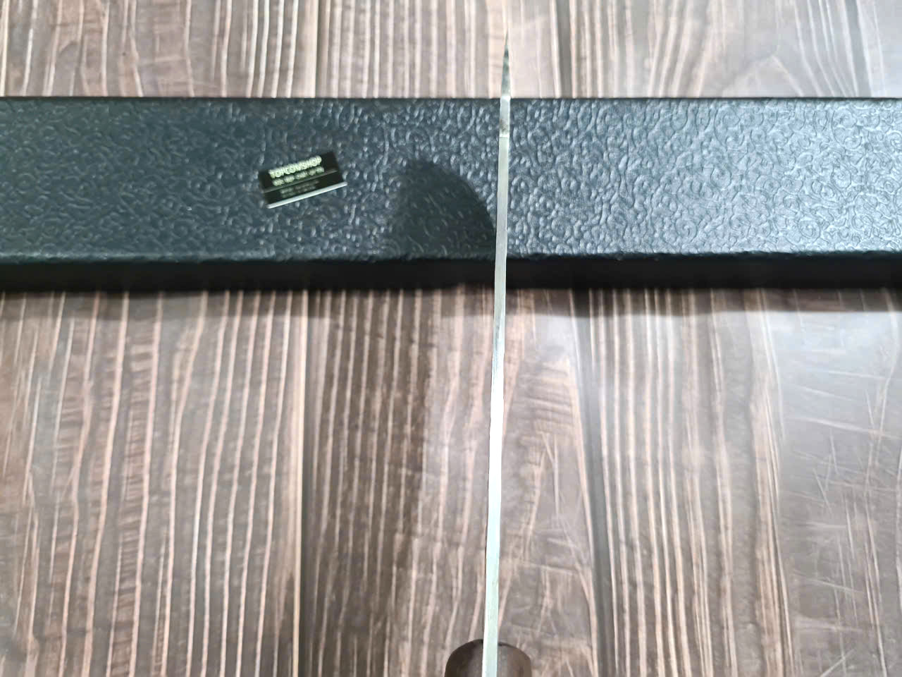 DAO BẾP SASHIMI MẶT HOA VĂN MÃ N4 THÔNG TIN SẢN PHẨM TỔNG DÀI : 45cm, LƯỠI: 30cm,RỘNG : 4cm, dày: 2.5mm, CHẤT liệu lưỡi: thép IFA cao cấp Chất liệu CÁN: gỗ Cẩm chỉ,