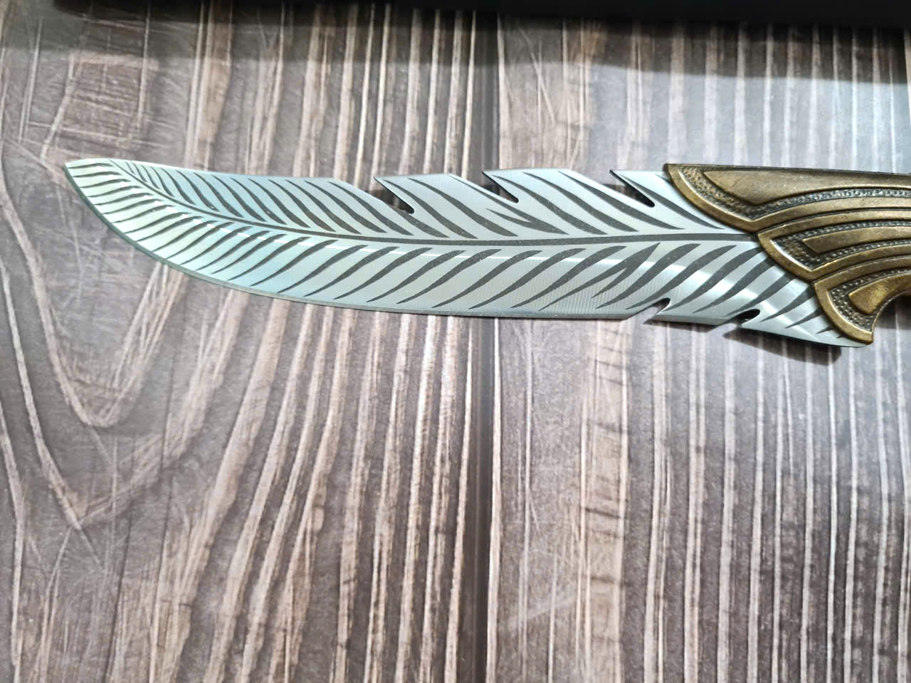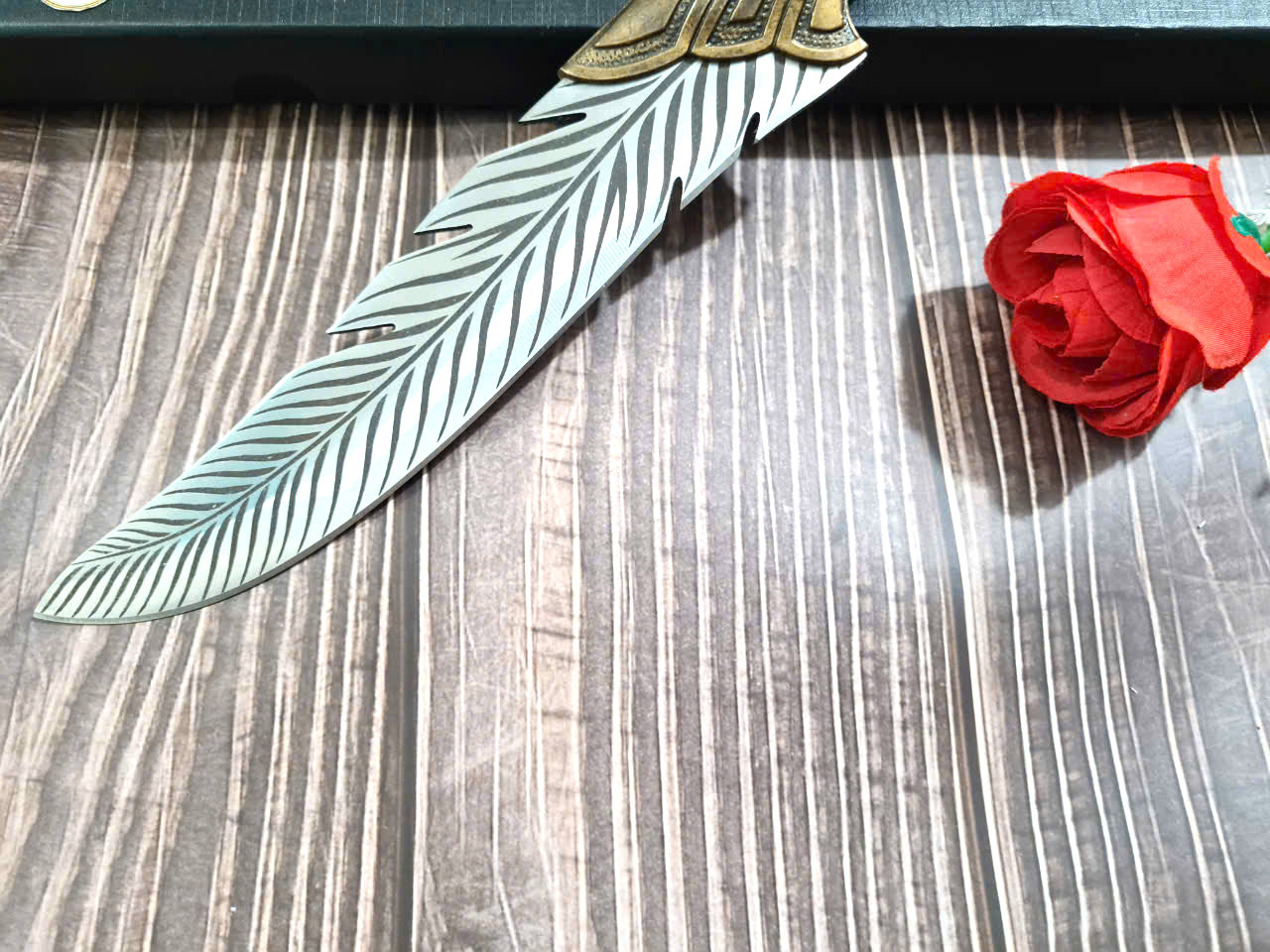 THÔNG TIN SẢN PHẨM TỔNG DÀI : 33cm, LƯỠI: 16.5cm,CÁN: 12cm ,RỘNG : 3,6cm, dày: 2.5mm, CHẤT liệu lưỡi: 7Cr17MOV (thép 7 crom 17 molypden vanadi) Chất liệu CÁN: gỗ cẩm lai, Các phụ kiện ( khâu ) : đồng thau NẶNG : 3 lạng