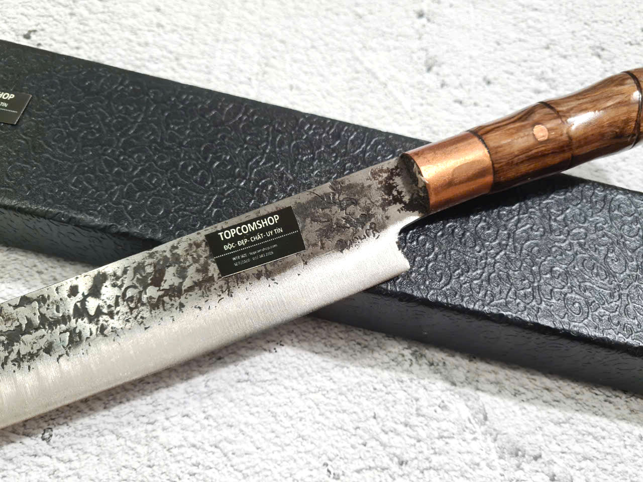**** DAO BẾP SASHIMI MUĨ VÁT MÃ N53 : TỔNG DÀI : 45cm, LƯỠI: 30cm,RỘNG : 4cm, dày: 2.5mm, CHẤT liệu lưỡi: thép IFA cao cấp Chất liệu CÁN: gỗ cẩm chỉ, Các phụ kiện ( khâu ) : đồng thau NẶNG : 3 lạng