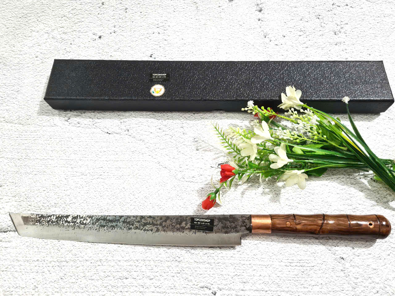 **** DAO BẾP SASHIMI MUĨ VÁT MÃ N53 : TỔNG DÀI : 45cm, LƯỠI: 30cm,RỘNG : 4cm, dày: 2.5mm, CHẤT liệu lưỡi: thép IFA cao cấp Chất liệu CÁN: gỗ cẩm chỉ, Các phụ kiện ( khâu ) : đồng thau NẶNG : 3 lạng