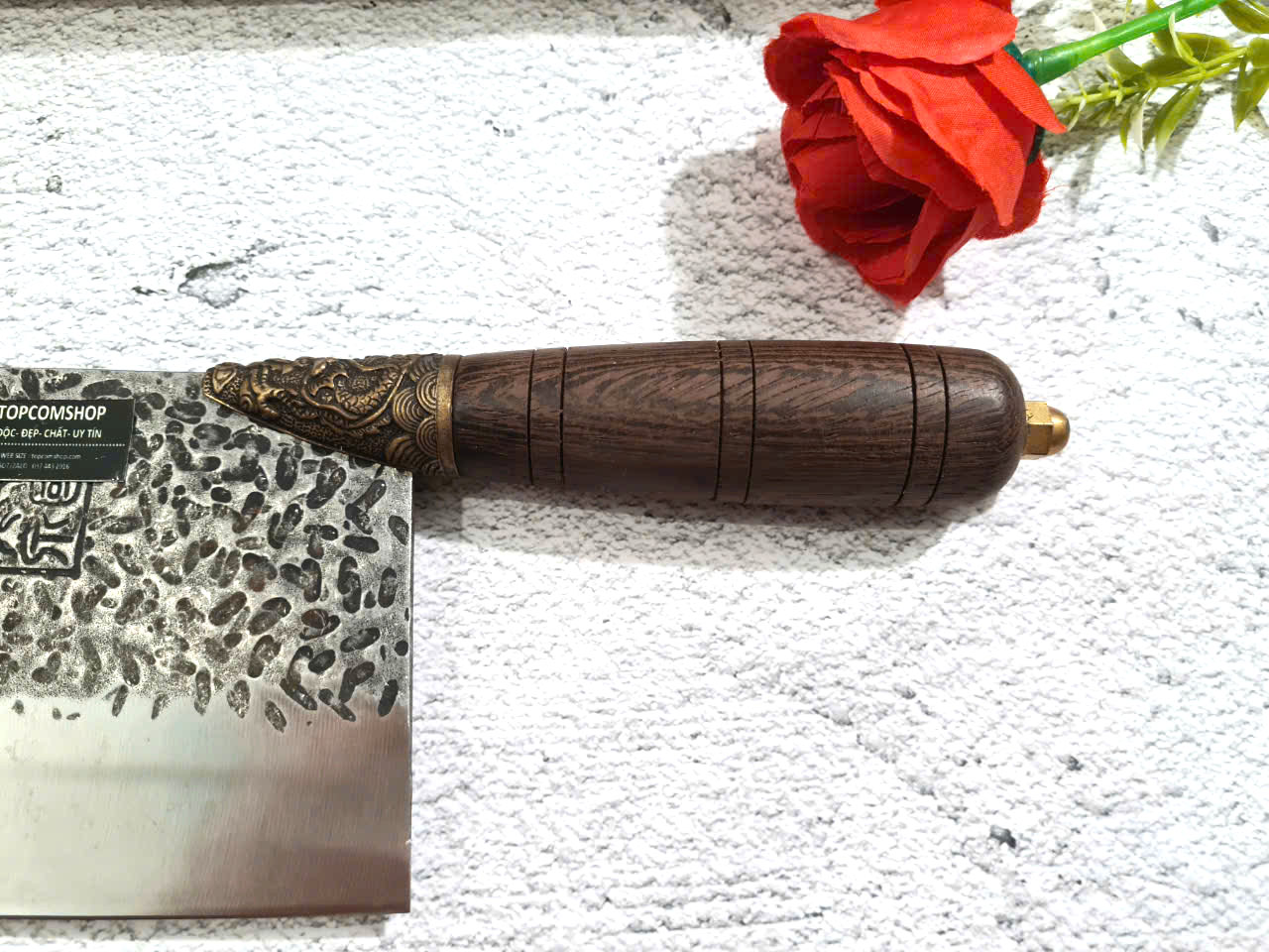 Dao Phúc Sen - Dao Chặt Gà Cán Cẩm Khâu Đồng G05D - Kích thước: lưỡi: 23cm, cán: 13cm, rộng: 8,5cm-9cm, dầy: 0,3, trọng lượng: 500g - 600g - Chức năng: sử dụng chuyên chặt