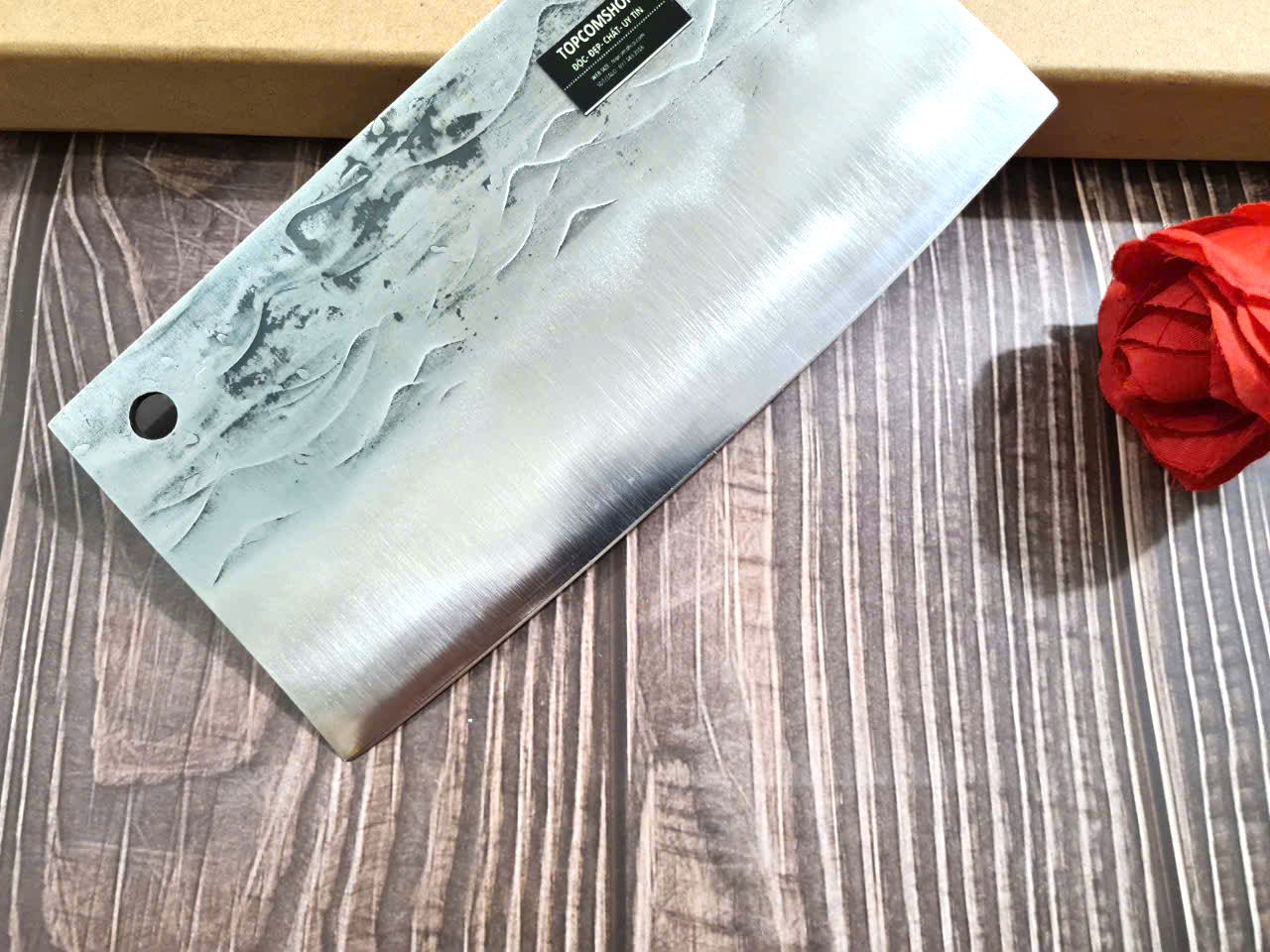 Dao thái bản vuông bếp Hoa thép N690 Bohler không rỉ - Vuadaobep.com - 0967866681
