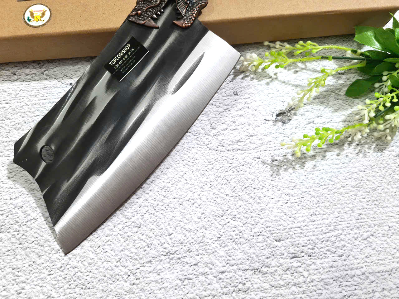 Dao thái bản vuông bếp Hoa thép N690 Bohler không rỉ - Vuadaobep.com - 0967866681