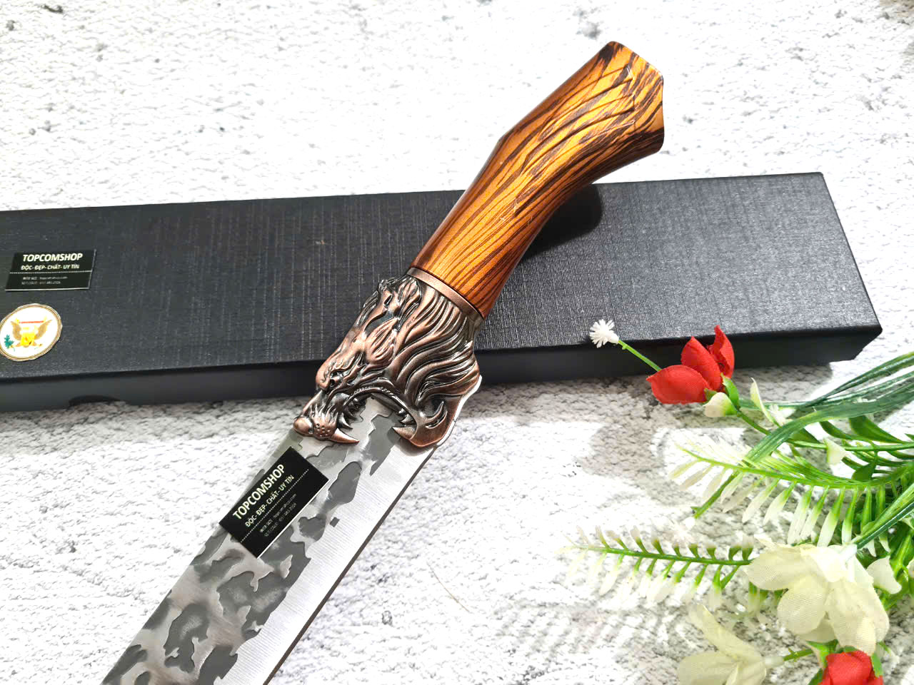 • Chất liệu: Thép Nhật 420J2, độ cứng 53HRC – siêu bền, chống gỉ • Lưỡi dao: Dày 2.5mm, sắc bén, hoàn thiện bằng đá mài nước • Tay cầm: Gỗ Pakka sang trọng, chống