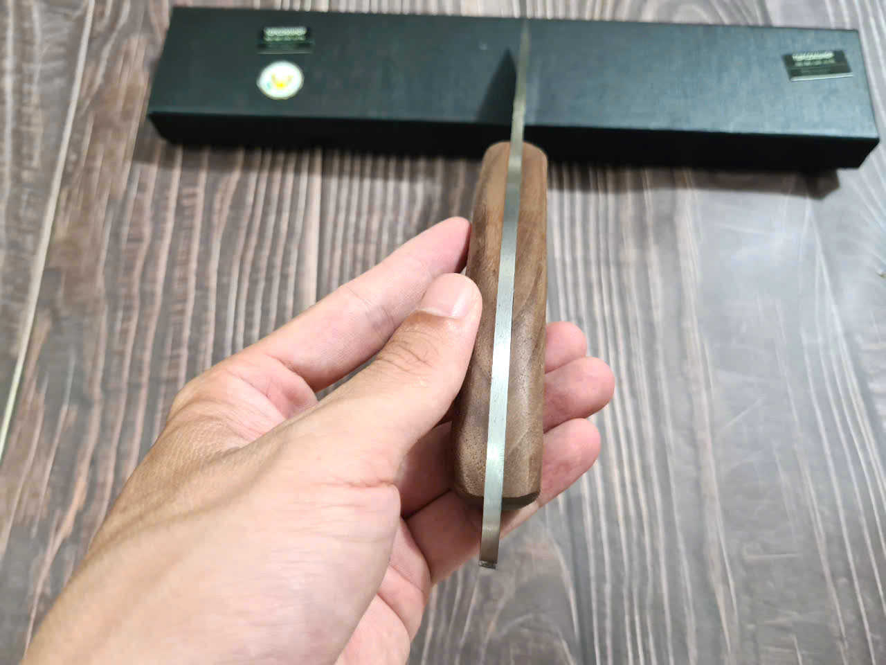 - Chức năng: chuyên lọc - thái cá thịt, rau củ. - Kích thước: Lưỡi: 21cm, cán: 12cm, rộng: 5cm, dầy: 2ly, trọng lượng: 200g - Cán : Gỗ mun , Khâu và chốt đồng