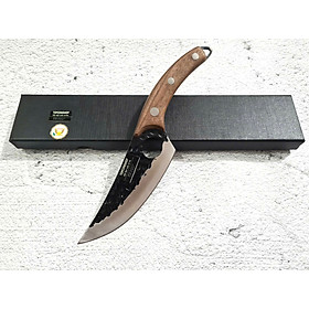 - Chất liệu: 100% thép nhíp ô tô được lựa chọn và kiểm duyệt kỹ càng. - Chất liệu cán: gỗ cẩm chỉ núi - Kích thước: lưỡi: 18cm, cán: 12cm, rộng: 6,5cm, dầy: 0,1,