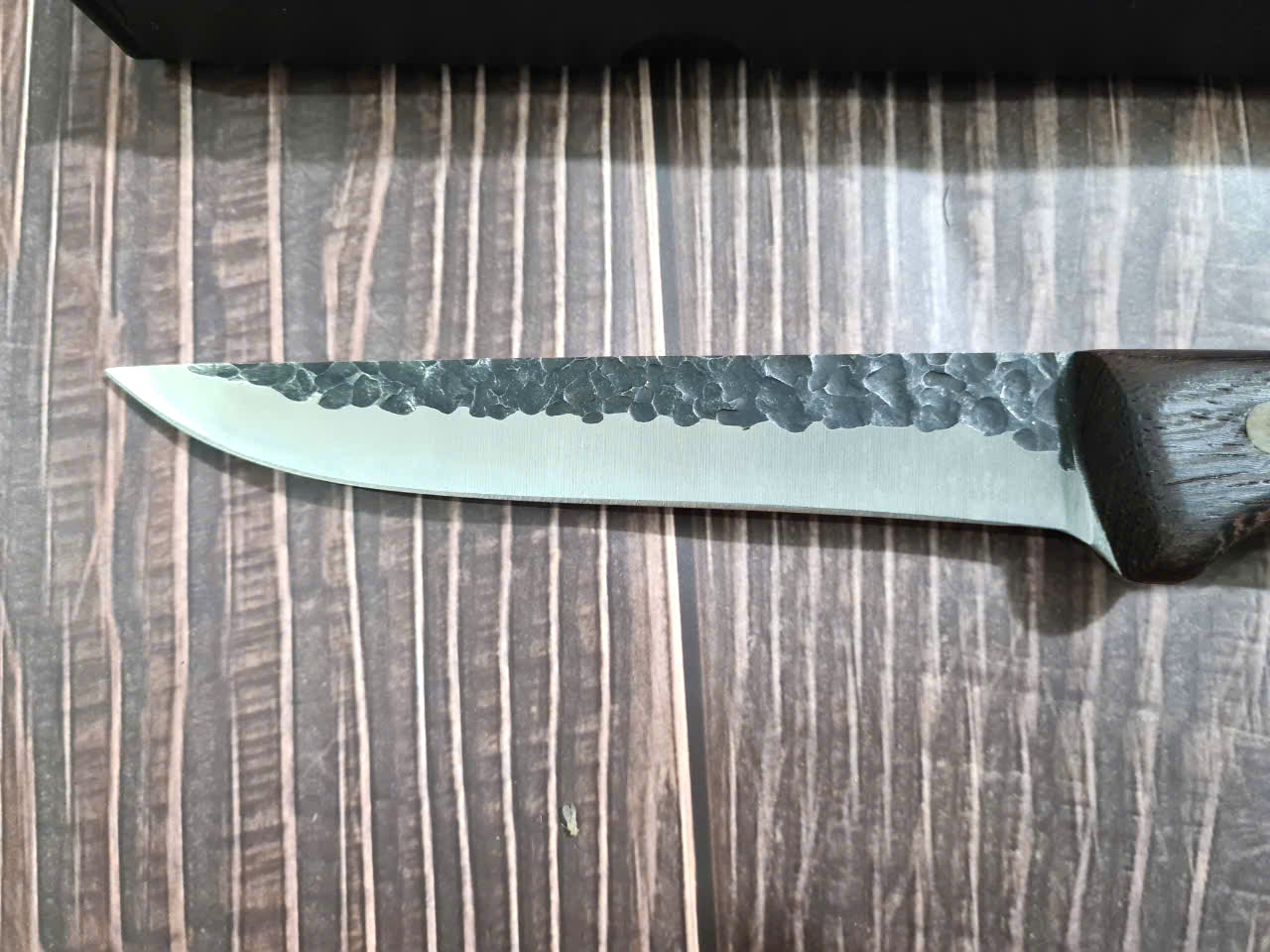 • Chất liệu: Thép Nhật 420J2, độ cứng 53HRC – siêu bền, chống gỉ • Lưỡi dao: Dày 2.5mm, sắc bén, hoàn thiện bằng đá mài nước • Tay cầm: Gỗ Pakka sang trọng, chống