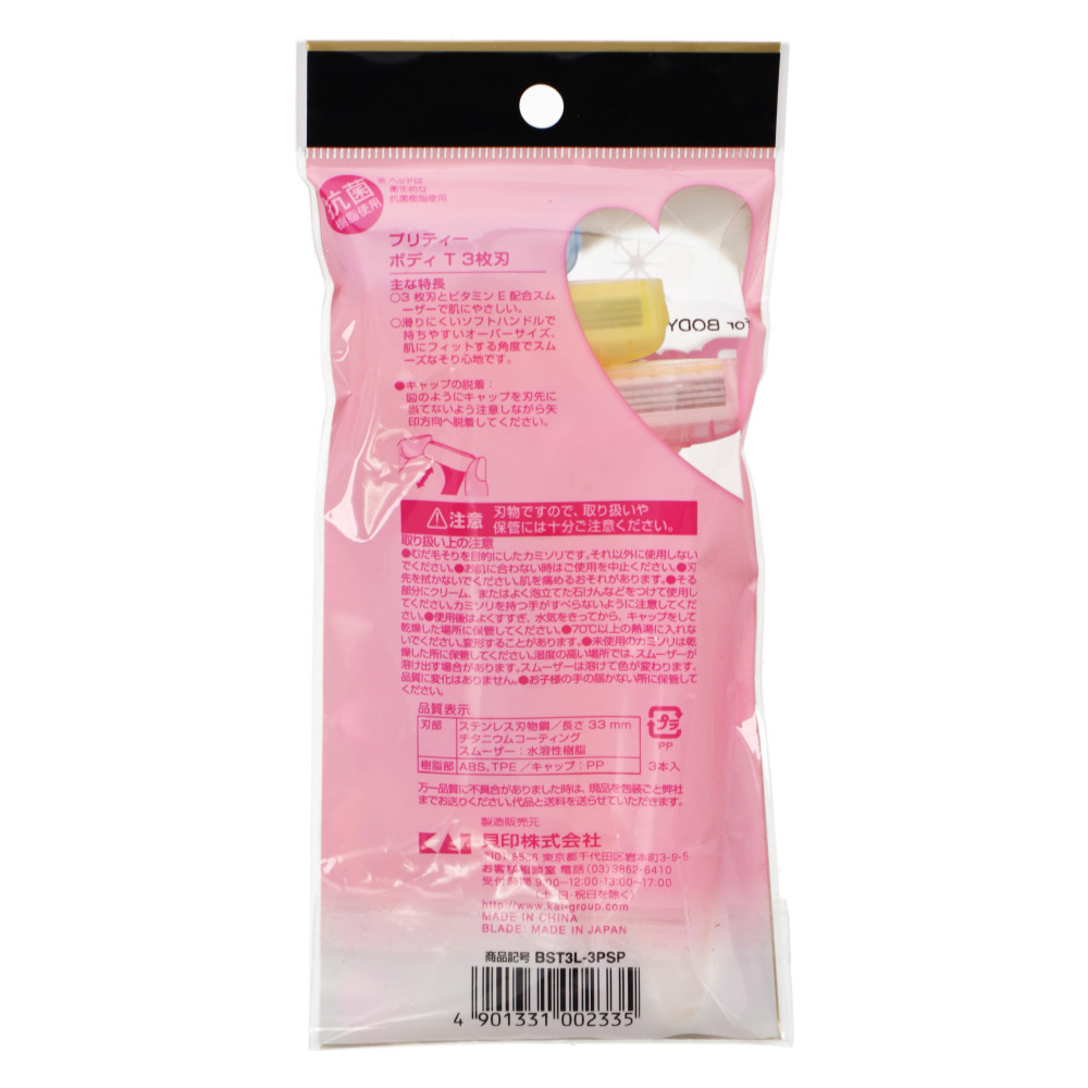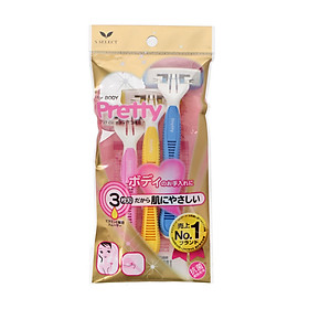 Set 03 chiếc dao cạo Kai Pretty Body, thiết kế 3 lưỡi kép tạo ra những đường cắt nhanh và hiệu quả hơn - nội địa Nhật Bản Chất liệu: Lưỡi bằng thép không