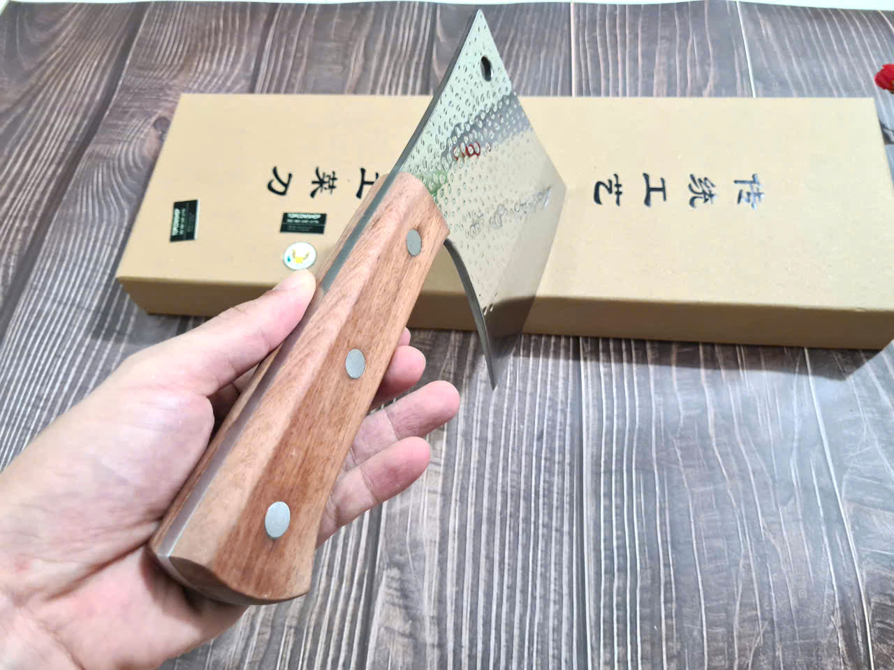 Dao Chặt Gà Cán Ốp Cẩm Siêu Bén - Chức năng: Chặt gà vịt, xương sườ - Kích thước: Lưỡi: 19cm, cán: 12.5 cm, rộng: 10 cm, dầy: 4 mm, nặng: 600 g - Cán
