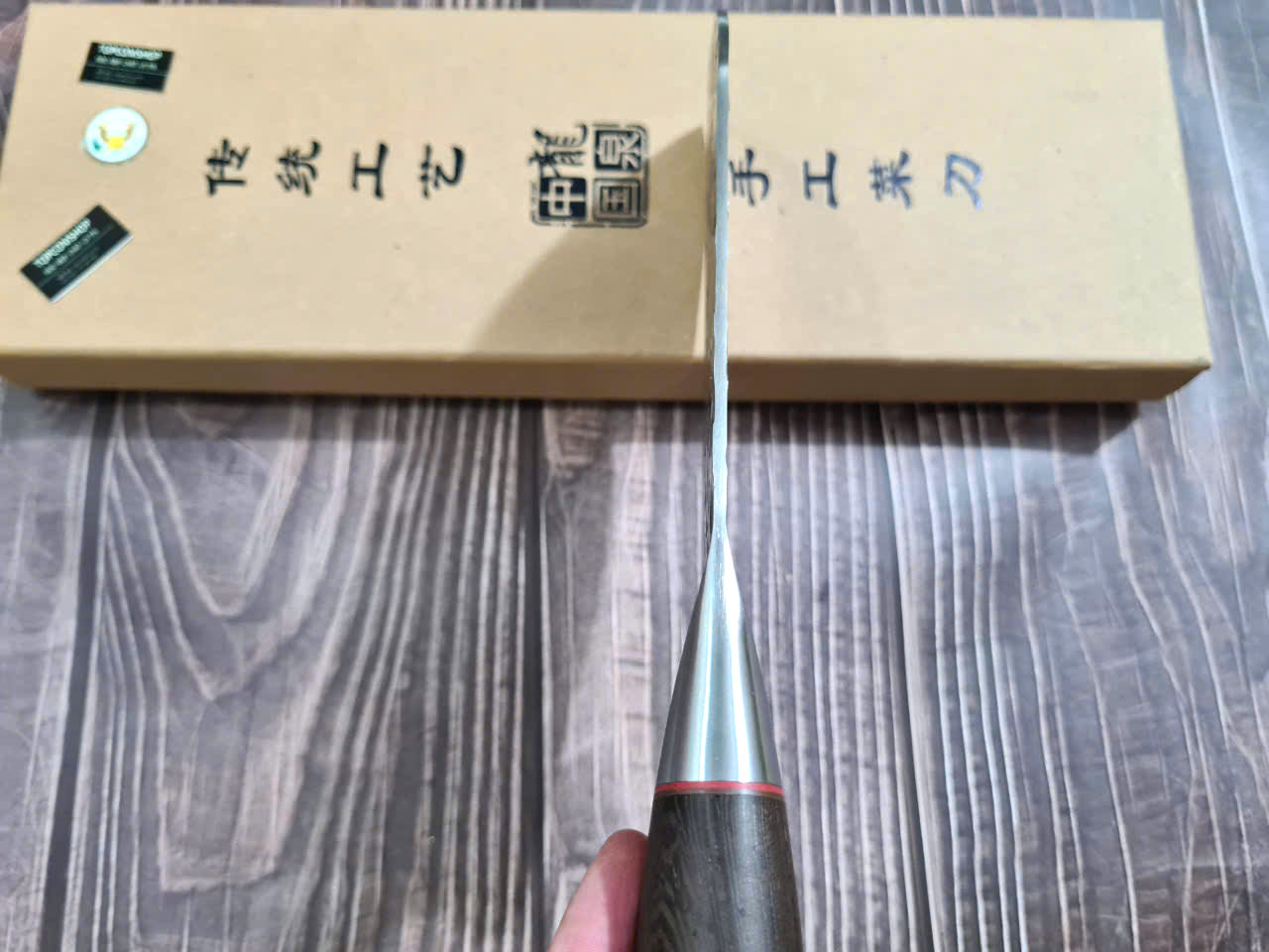 - Chức năng: chuyên chặt thái cá, chặt gà, lọ - Kích thước: Lưỡi: 26cm, cán: 12,5cm, rộng: 6,5cm, dầy: 4ly, trọng lượng: 480g - Cán : Gỗ mun , Khâu và chốt đồng đỏ